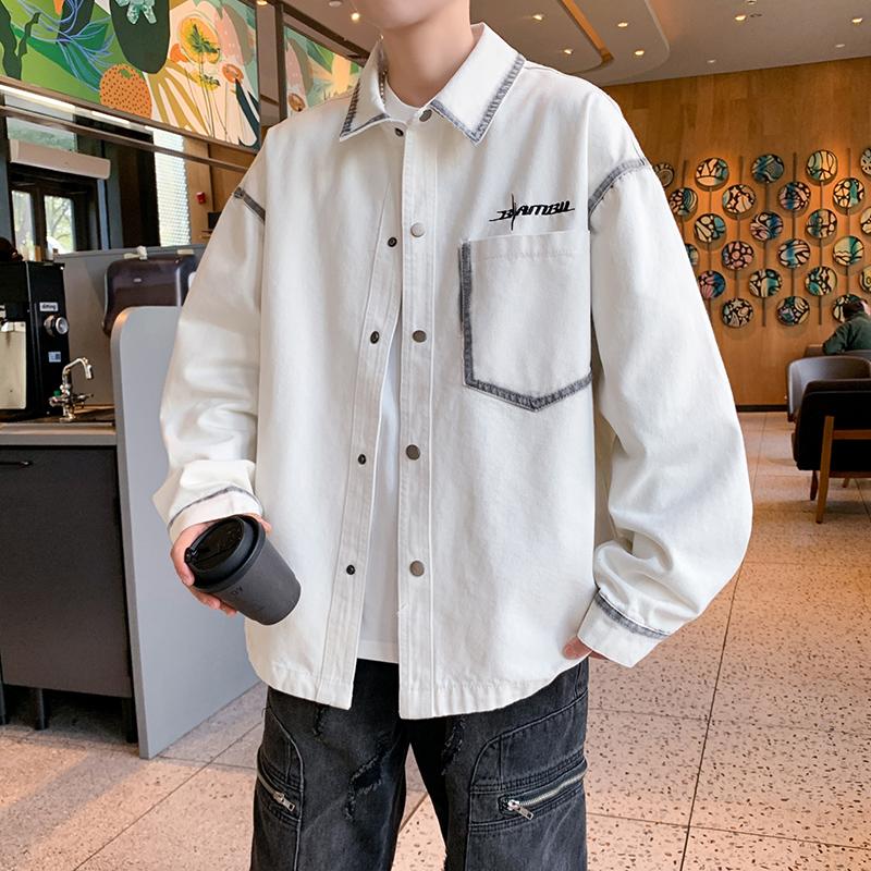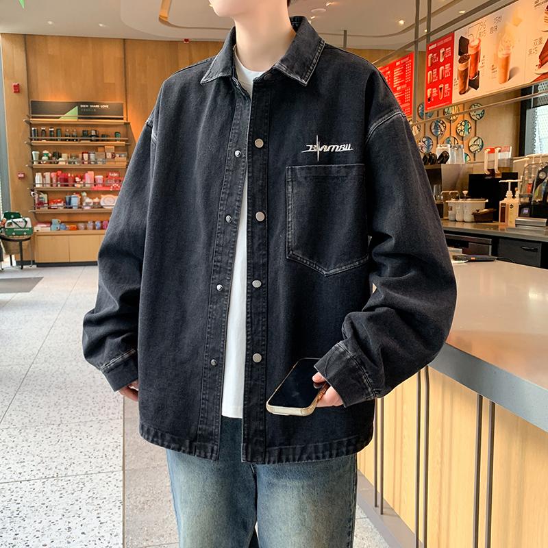 青少年水洗牛仔外套男高级感痞帅翻领春秋款衬衣男士2025新款夹克