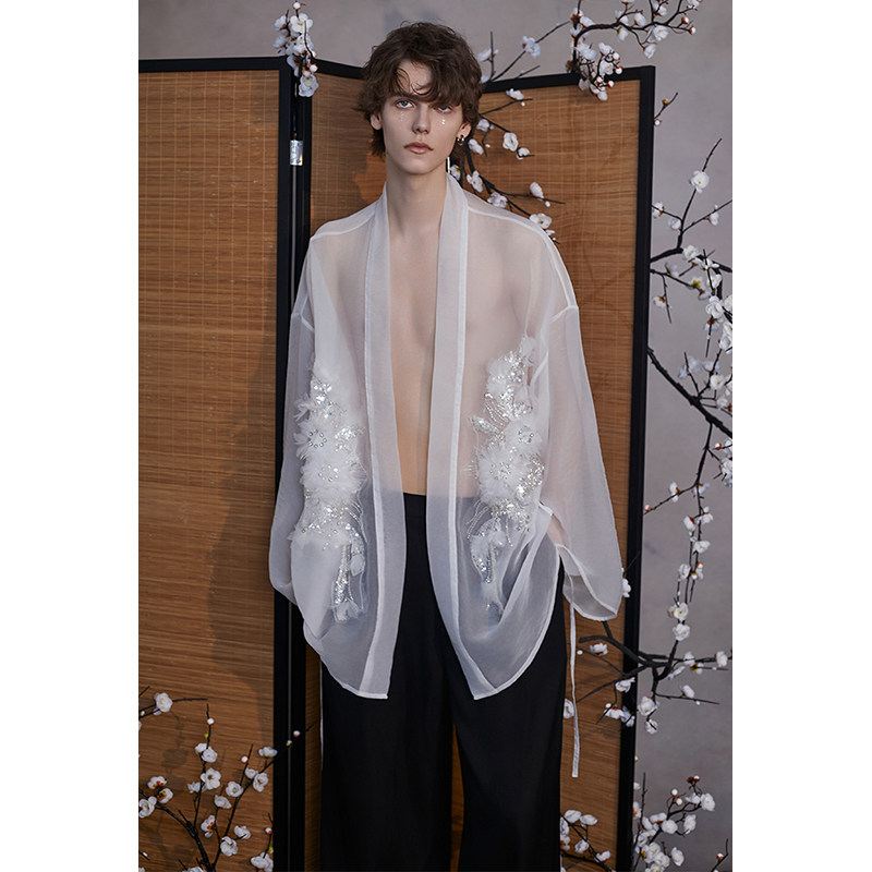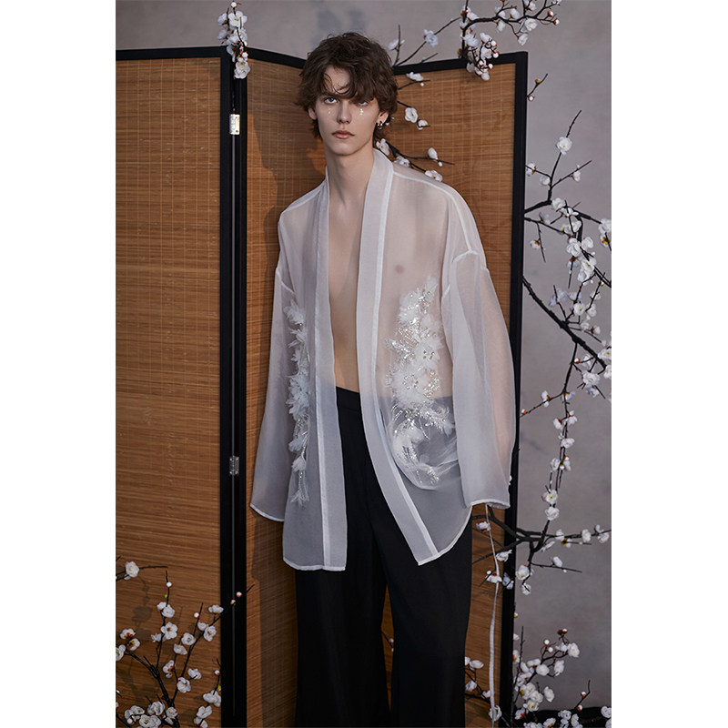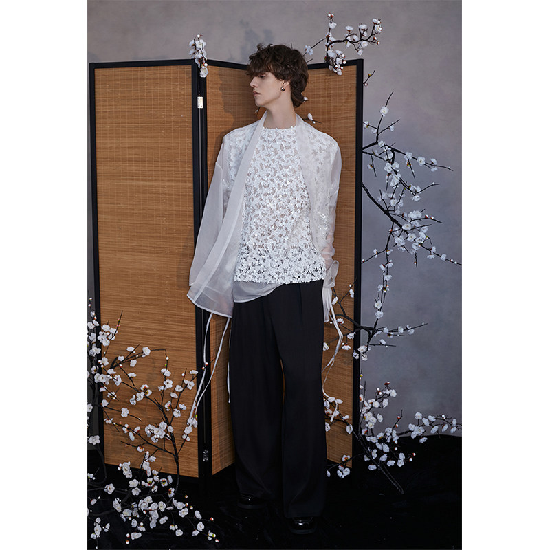 介尺JIECHI「白兰镜鸢」新中式白色衬衫外套男高级感宽松廓形上衣