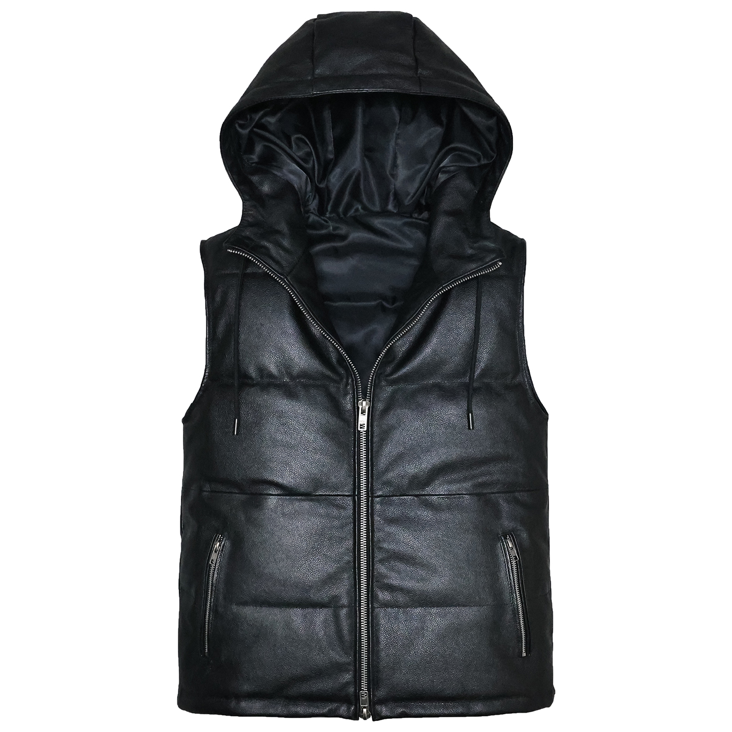 男女真皮羽绒马甲头层牛绵羊皮衣修身连帽休闲夹克坎肩背心外套池