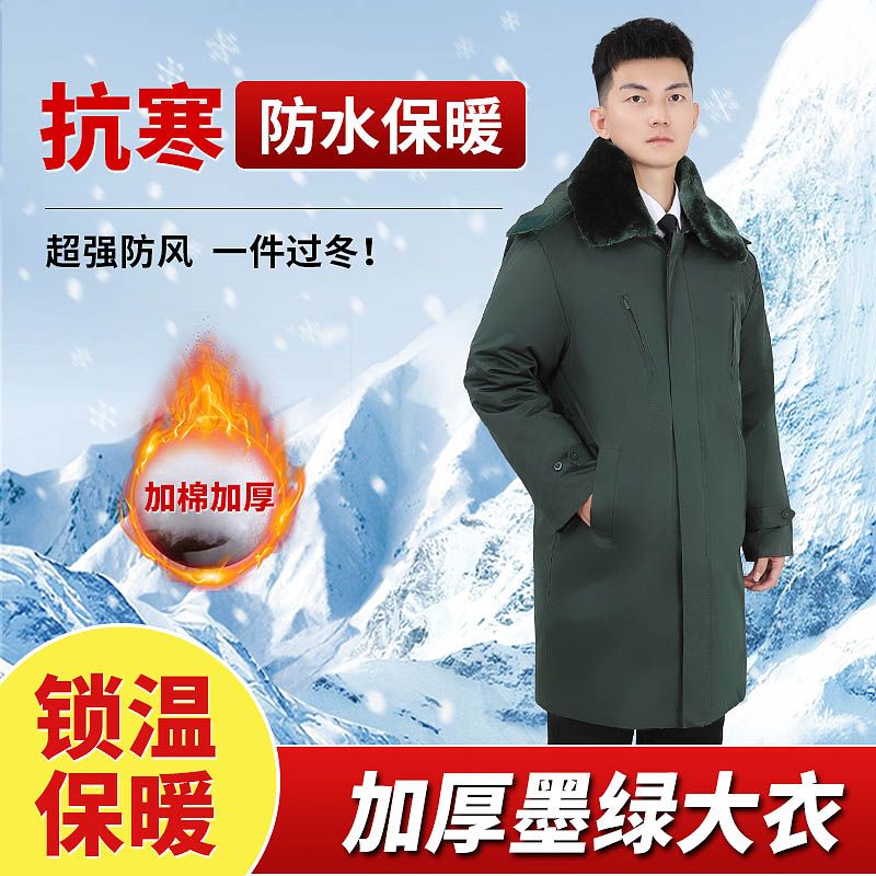 新款拉链棉服军棉大衣正版男女单位邮政棉袄中长款带抽绳可拆防水