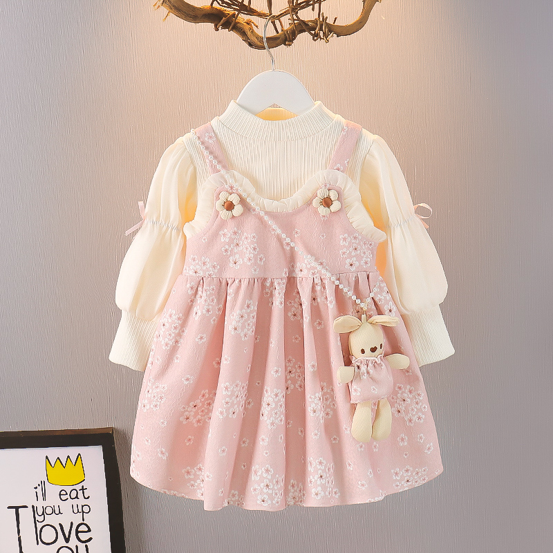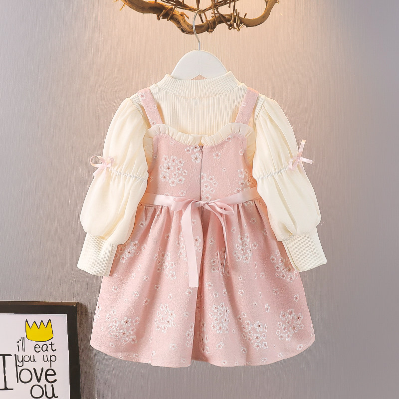 童装女童秋装套装2023新款宝宝洋气碎花连衣裙+T恤两件套春秋潮