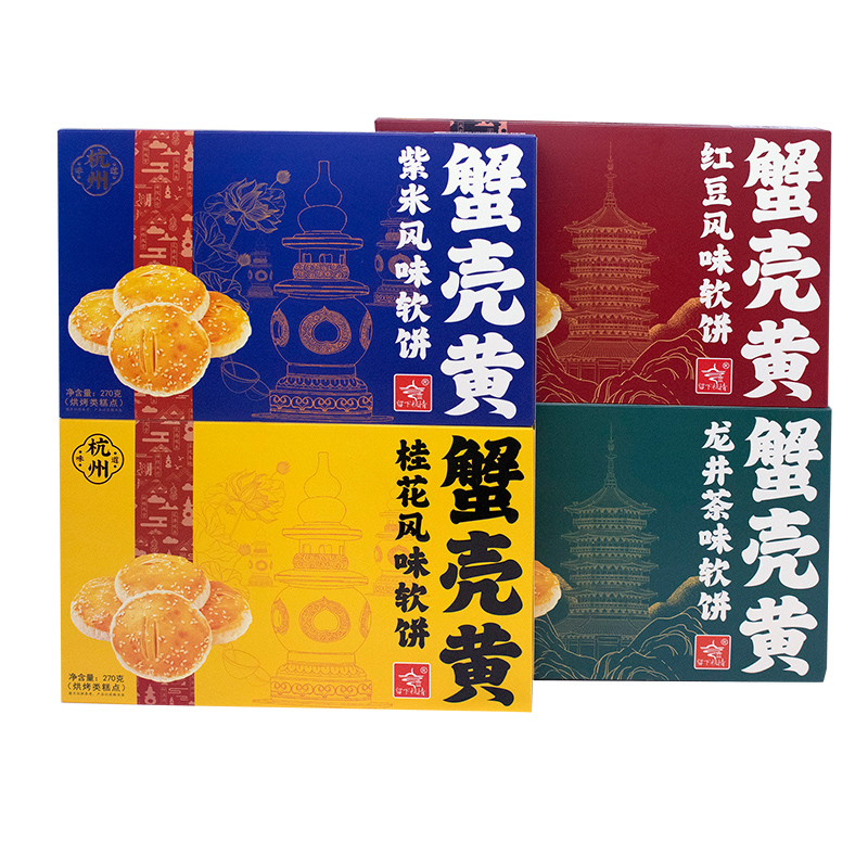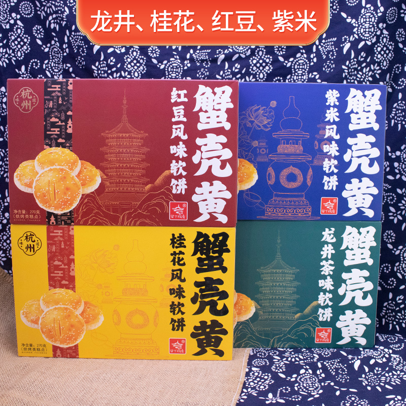 杭州风味蟹壳黄软饼烧饼270g盒装红豆紫米老婆饼送人精美礼品杭策