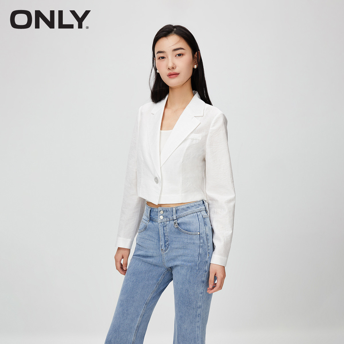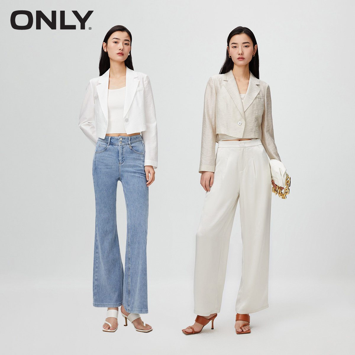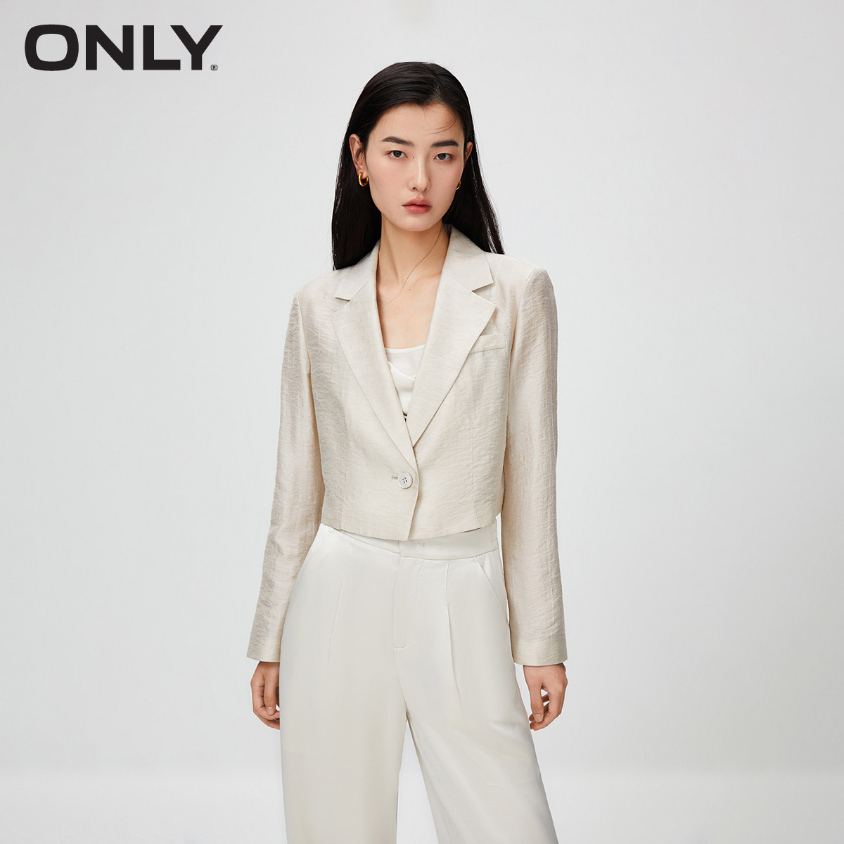 绫致ONLY秋冬新时尚通勤直筒短款丝光暗纹西服外套女潮