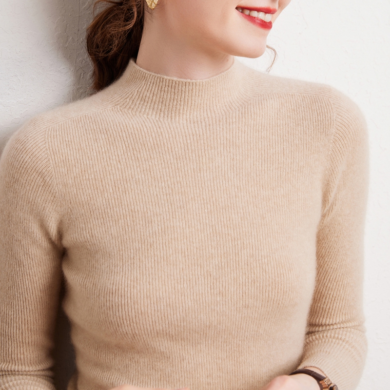 一线成衣康赛妮100纯山羊绒衫女半高领秋冬针织打底修身毛衣秋冬