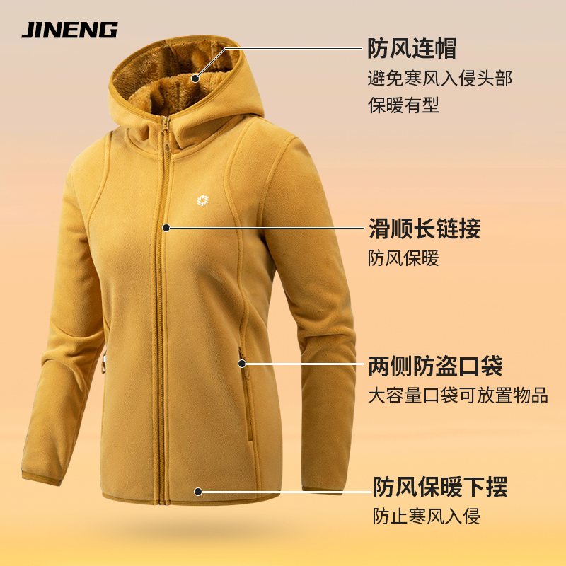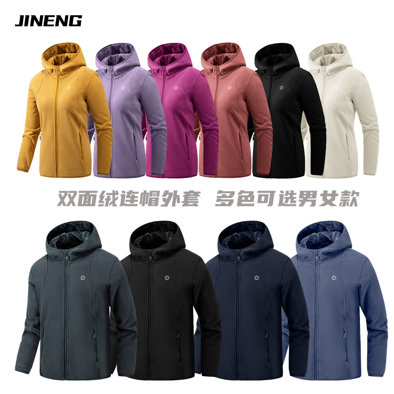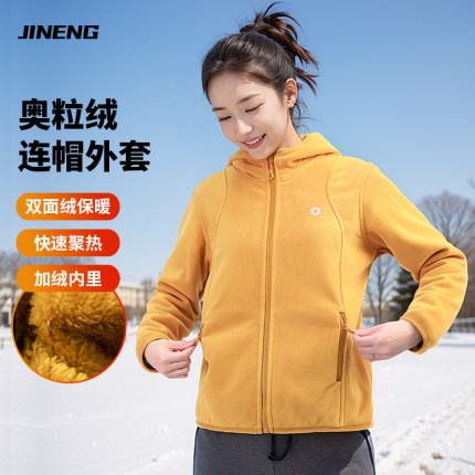 积能户外抓绒衣女跑步外套秋冬加厚男冲锋衣内胆保暖运动帽衫
