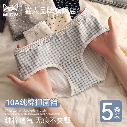 猫人纯棉内裤女士10A抑菌纯棉裆2025年新款中腰无痕少女生三角裤
