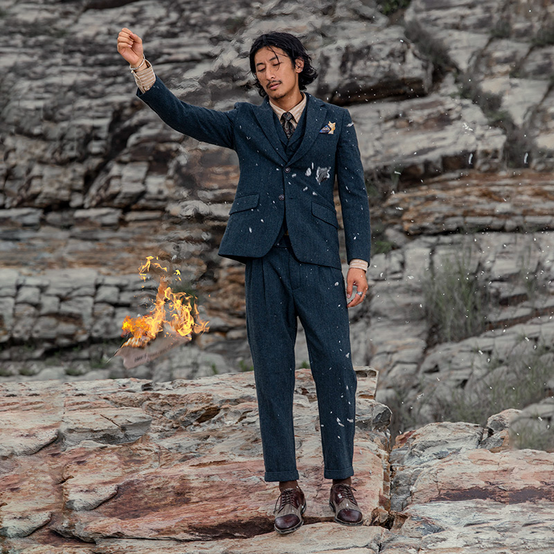 SOARIN复古英伦风粗花呢西装外套男 雅痞商务正装婚礼蓝色单西服