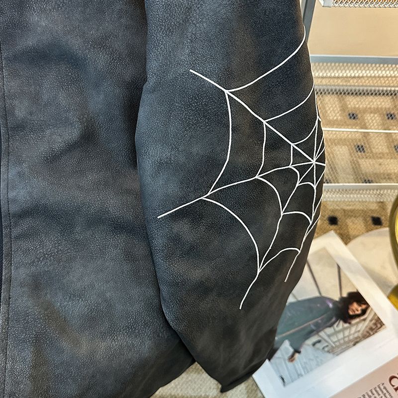 2025秋季美式高街刺绣pu皮夹克男女款拉链休闲宽松百搭街头棒球服