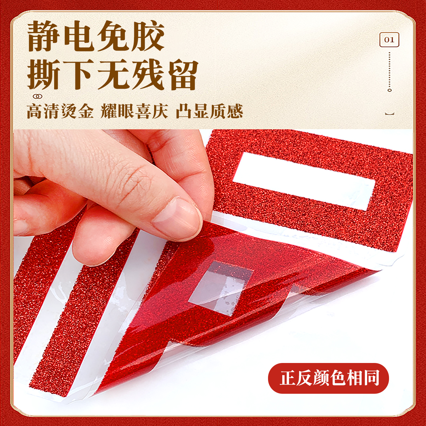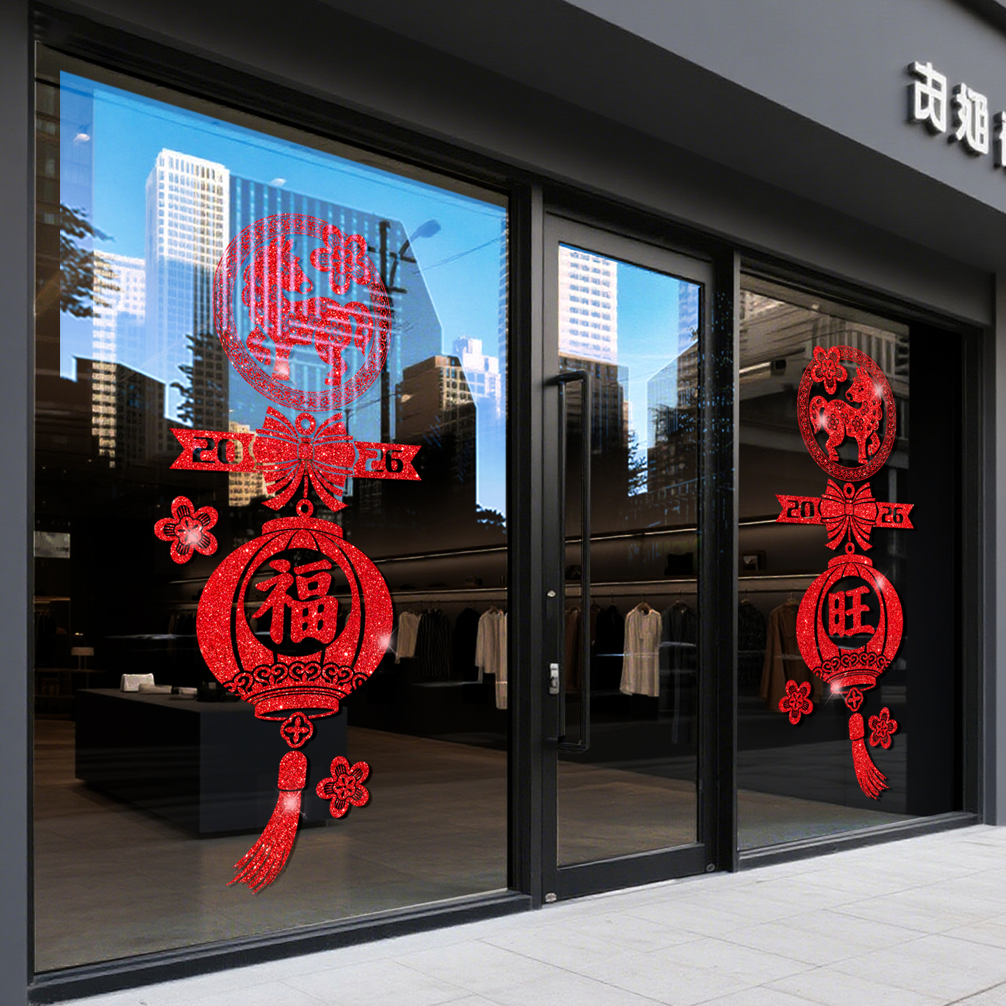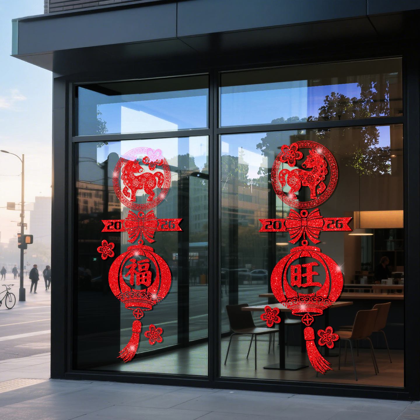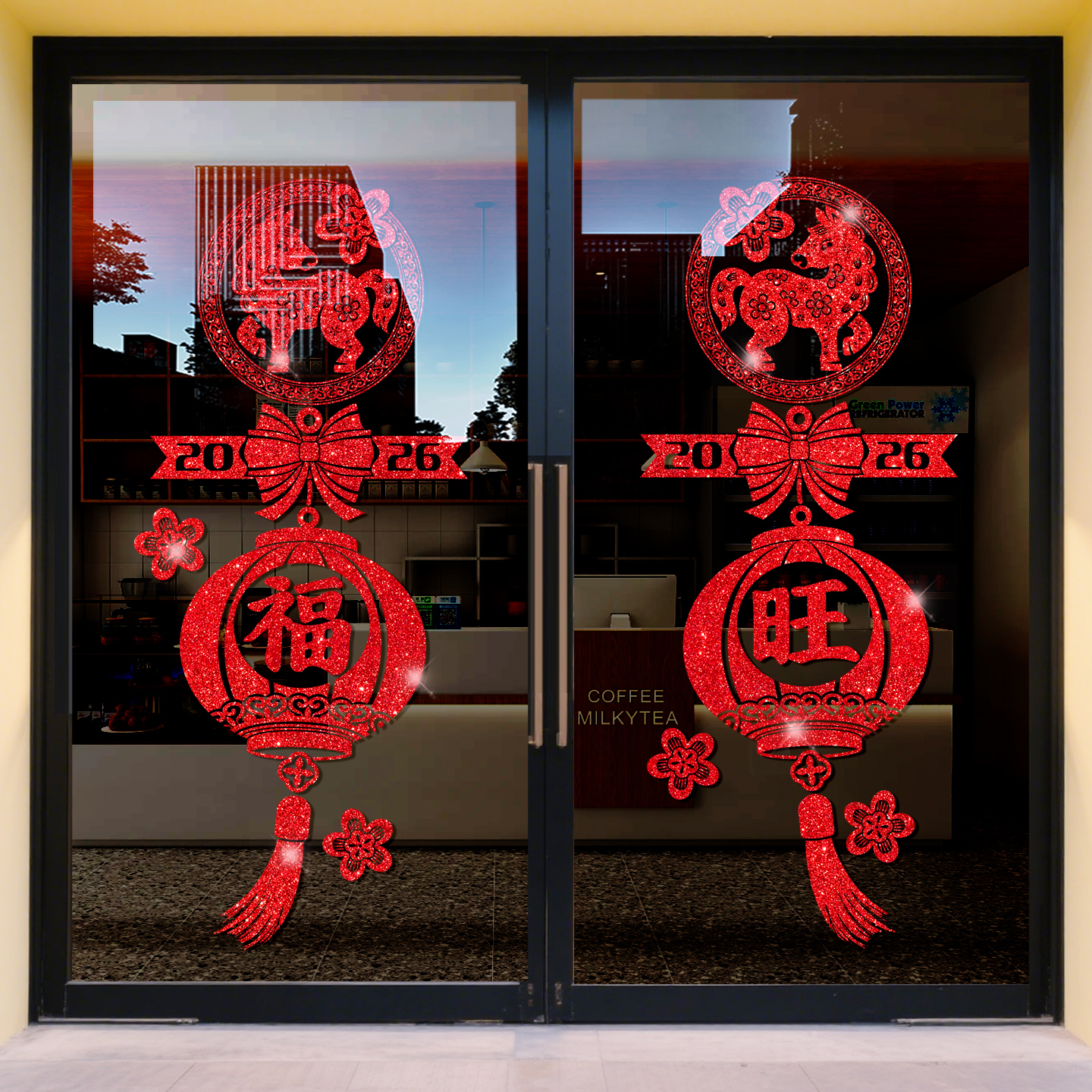 2026新年装饰闪粉玻璃贴纸福字窗贴过年马年门贴春节窗花福字年画