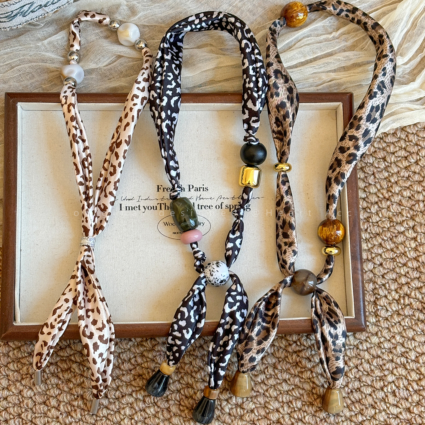 美拉德豹纹丝巾项链女款复古小众设计百搭毛衣链时尚个性独特配饰