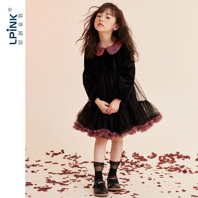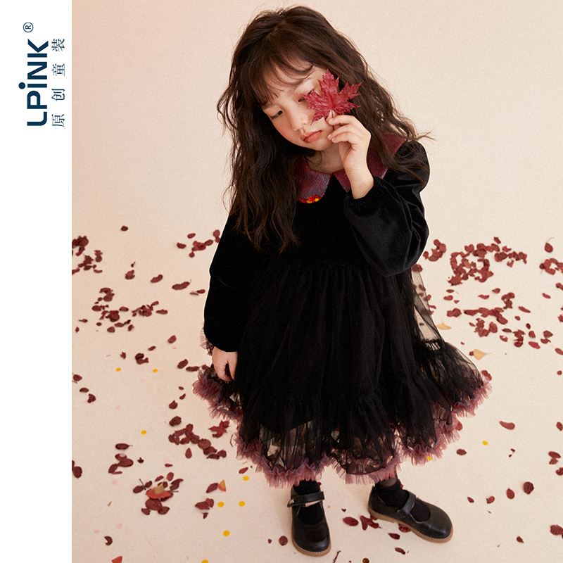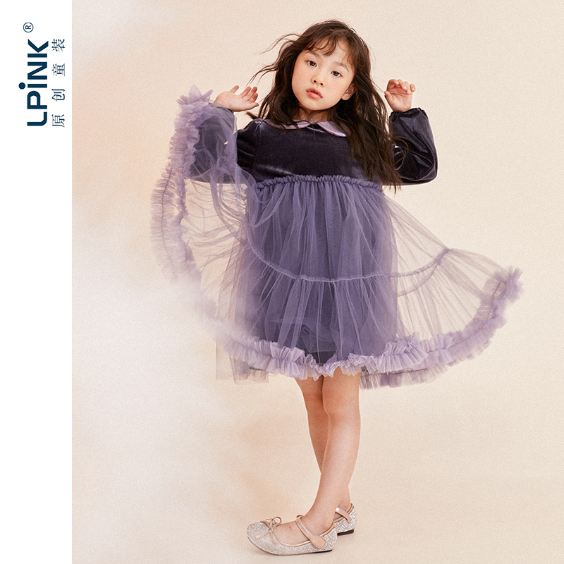 【Lpink童装】中大女童新款 秋冬款兔耳朵网纱兔兔连衣裙85837