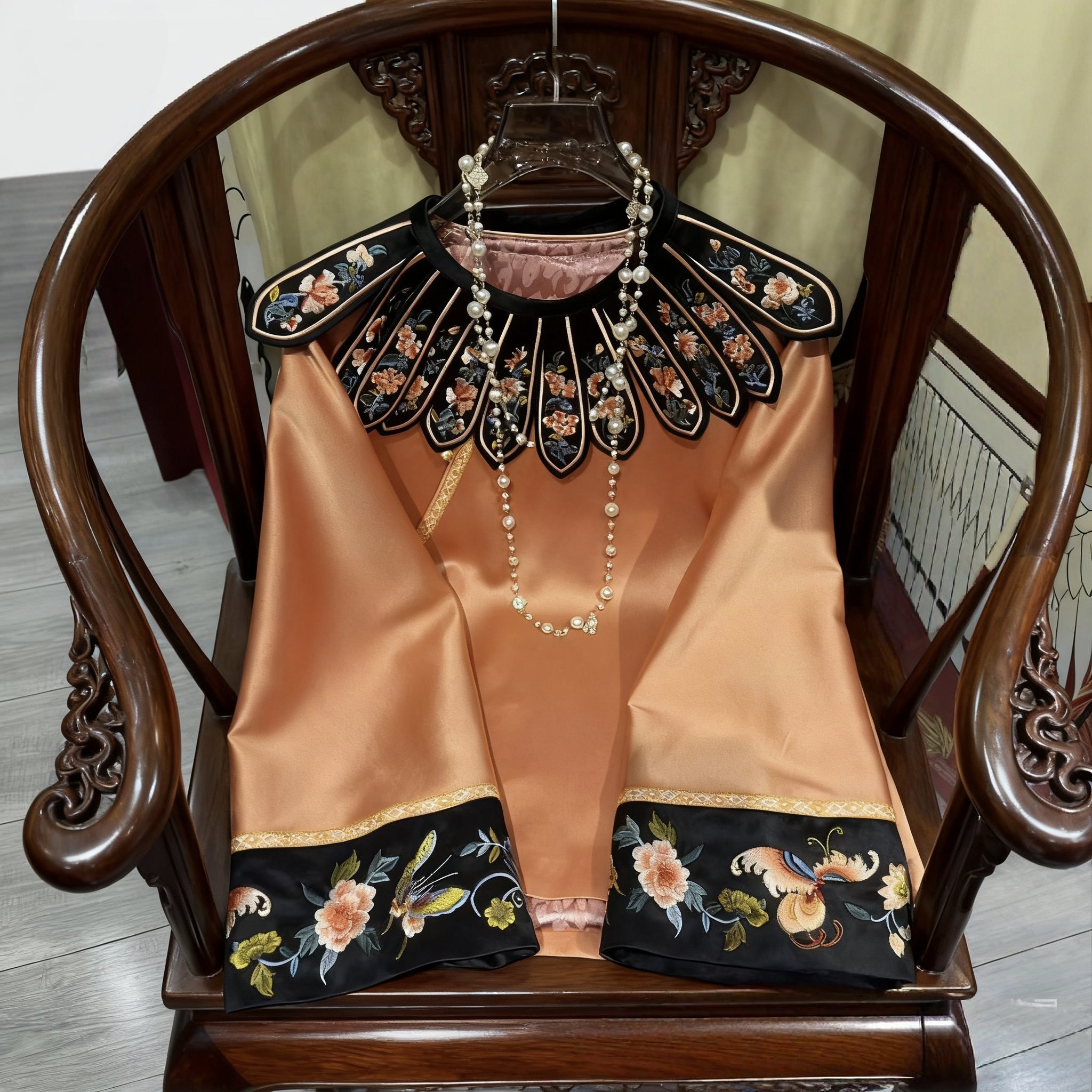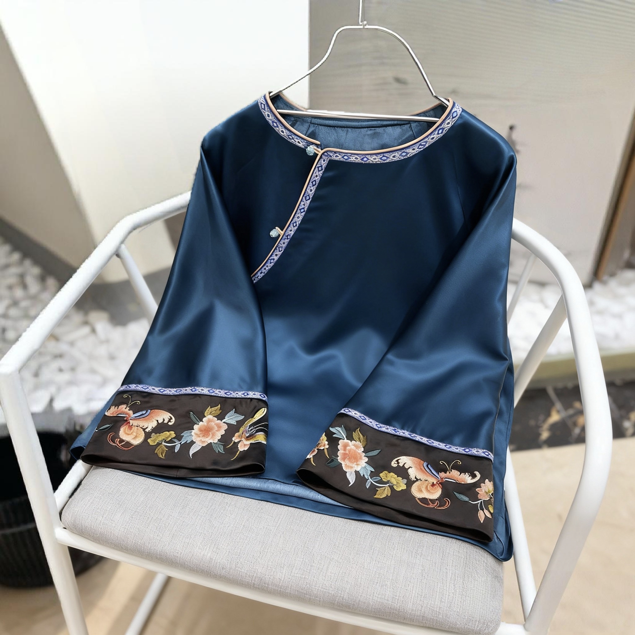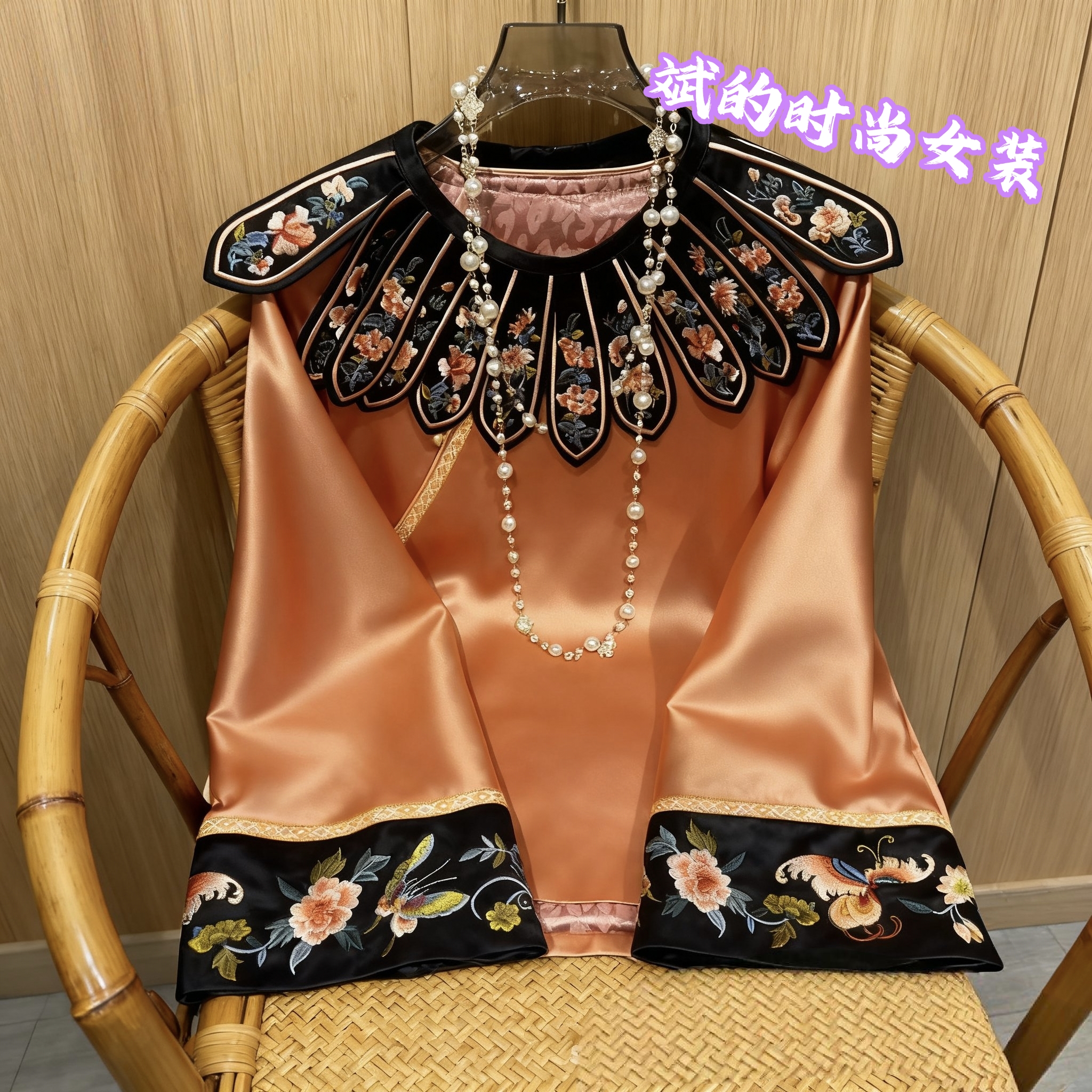 新中式宫廷四季花朵刺绣云肩改良唐装上衣复古国风清汉醋酸外套女