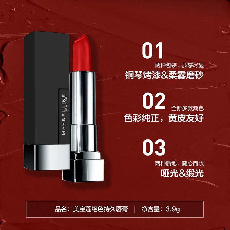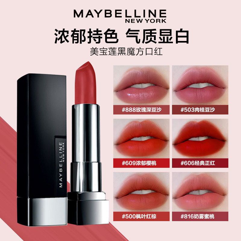 美宝莲黑魔方口红503 正红色609 888不易脱色唇膏官方旗舰店正品