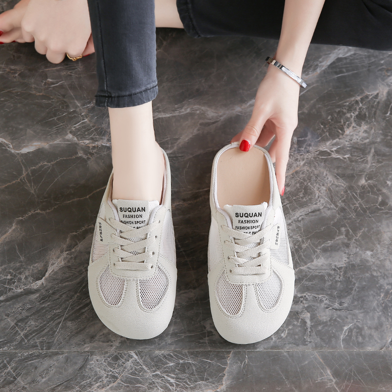 包头半拖鞋女外穿2025夏季镂空透气一脚蹬小白鞋34码无后跟德训鞋
