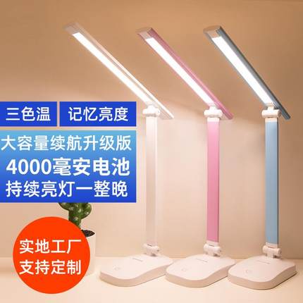 LED折叠台灯三色温学生学习书桌卧室夜灯床头充电式宿舍灯