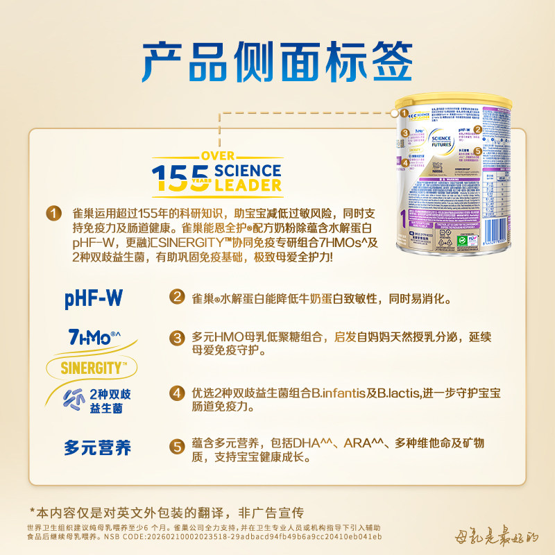 【自营】雀巢超高端能恩全护7HMO益生菌适度水解低敏奶粉1段350g