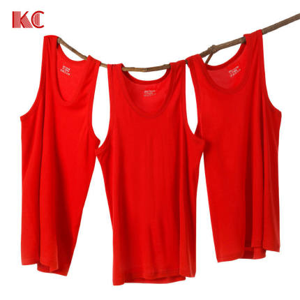 kc100%纯棉男背心本命年大红色汗衫衫夏季透气跨栏全棉打底老头衫