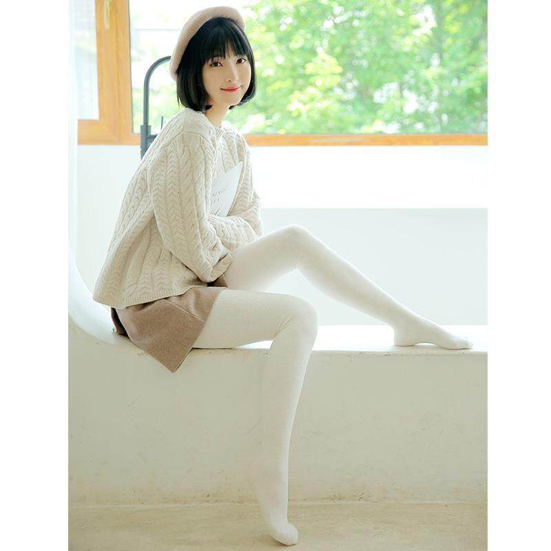 棉连裤袜女秋冬薄绒春秋加厚针织加绒打底袜奶咖啡色燕麦白色丝袜