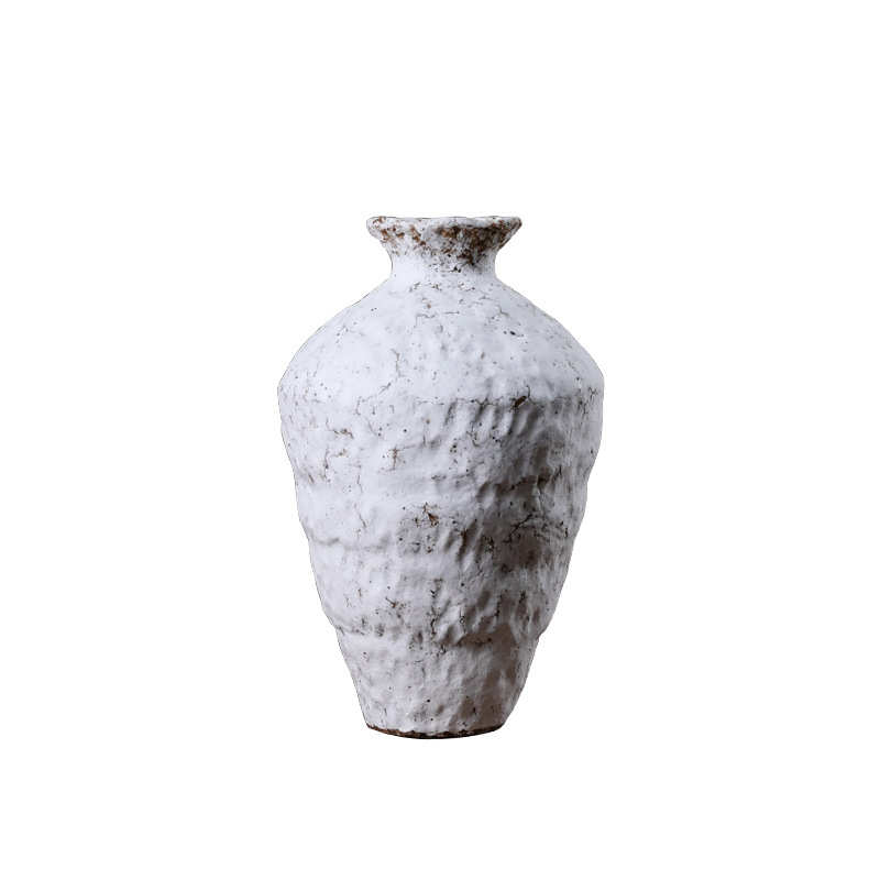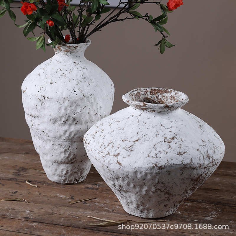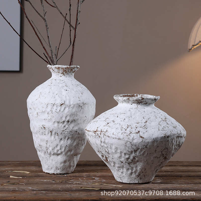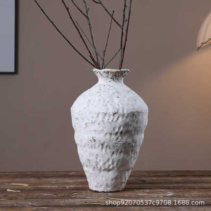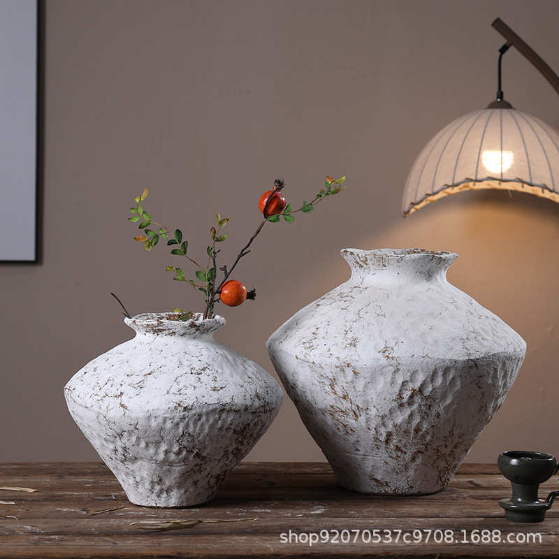 禅意酒店寂陶罐复古陶新中式宿干花风摆件粗陶瓷白色花瓶装饰侘民