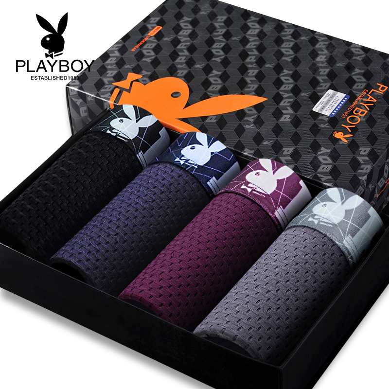 花花公子网眼男士内裤冰丝四角裤莫代尔平角裤透气裤衩无痕短裤头