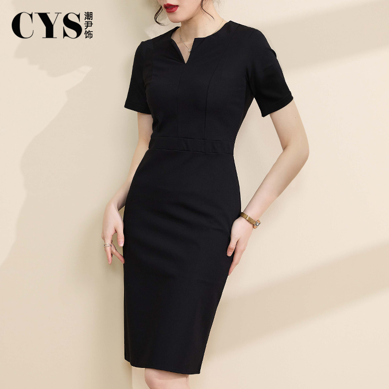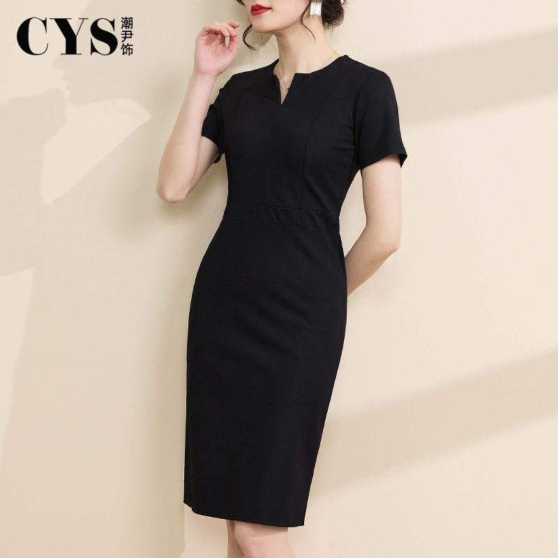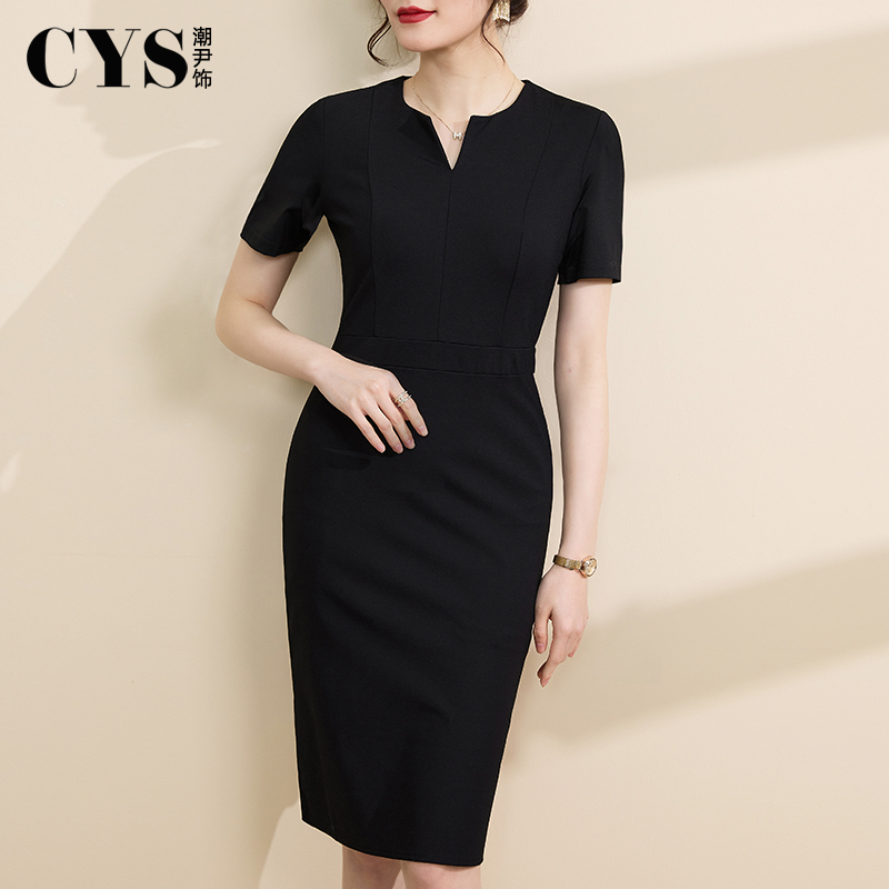 2025夏季新款正式场合黑色职业连衣裙女短袖包臀裙修身显瘦工装裙