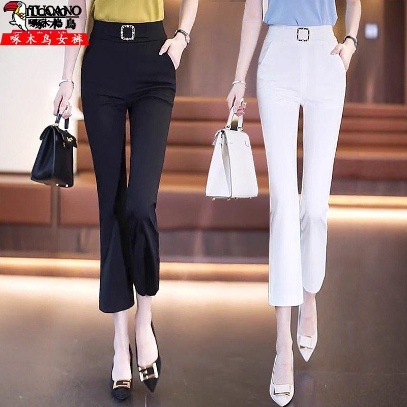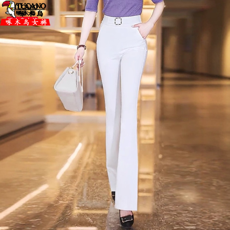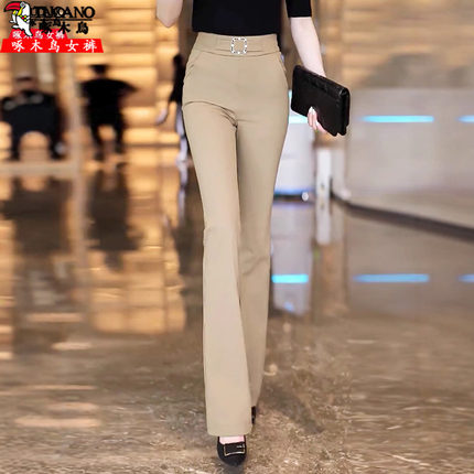 啄木鸟气质感微喇裤女2025年新款春季垂感修身职业喇叭休闲西装裤