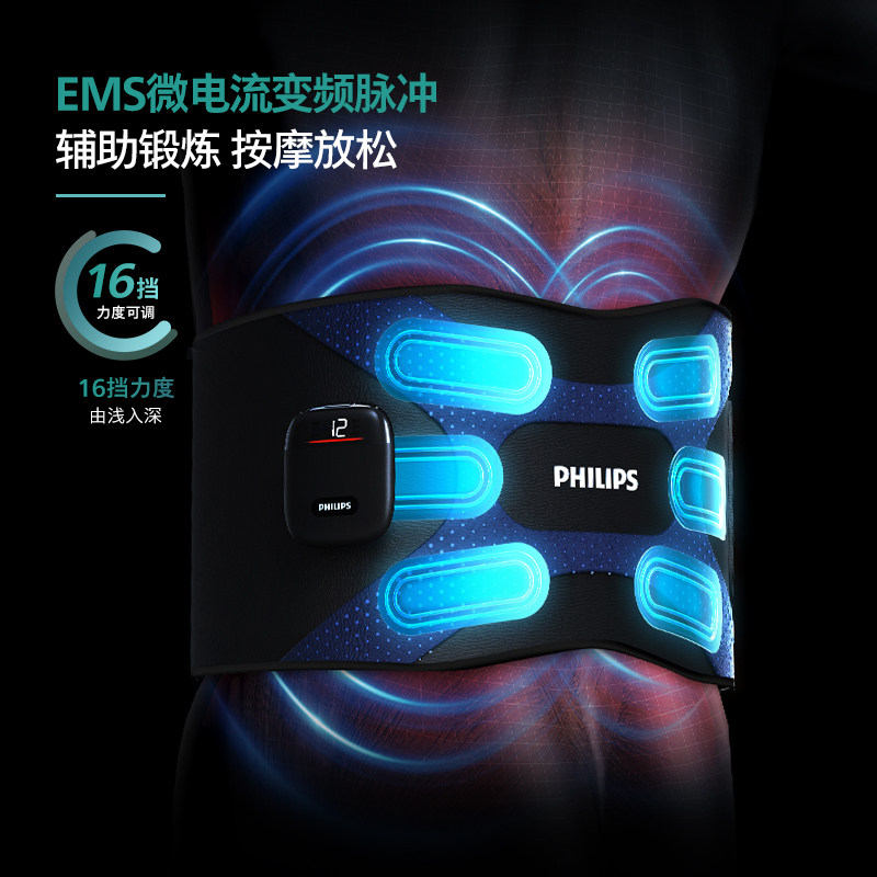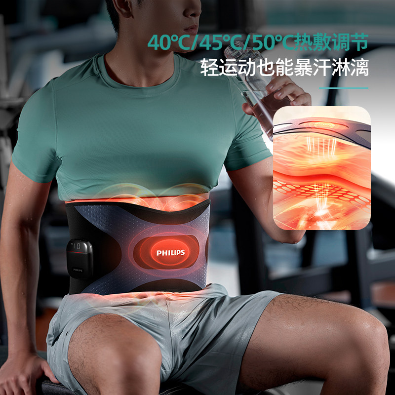 飞利浦腰部按摩仪腰腹健身无线热敷暴汗护腰带懒人护腰运动腰带