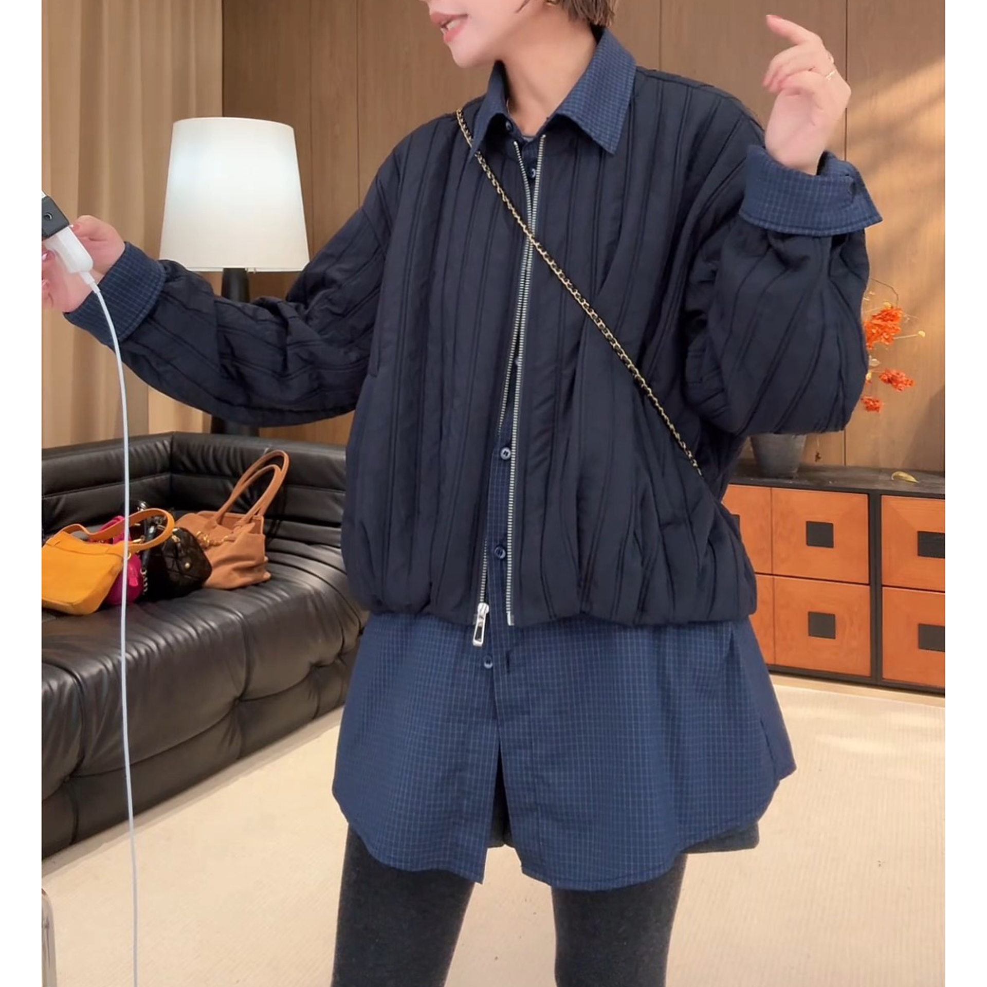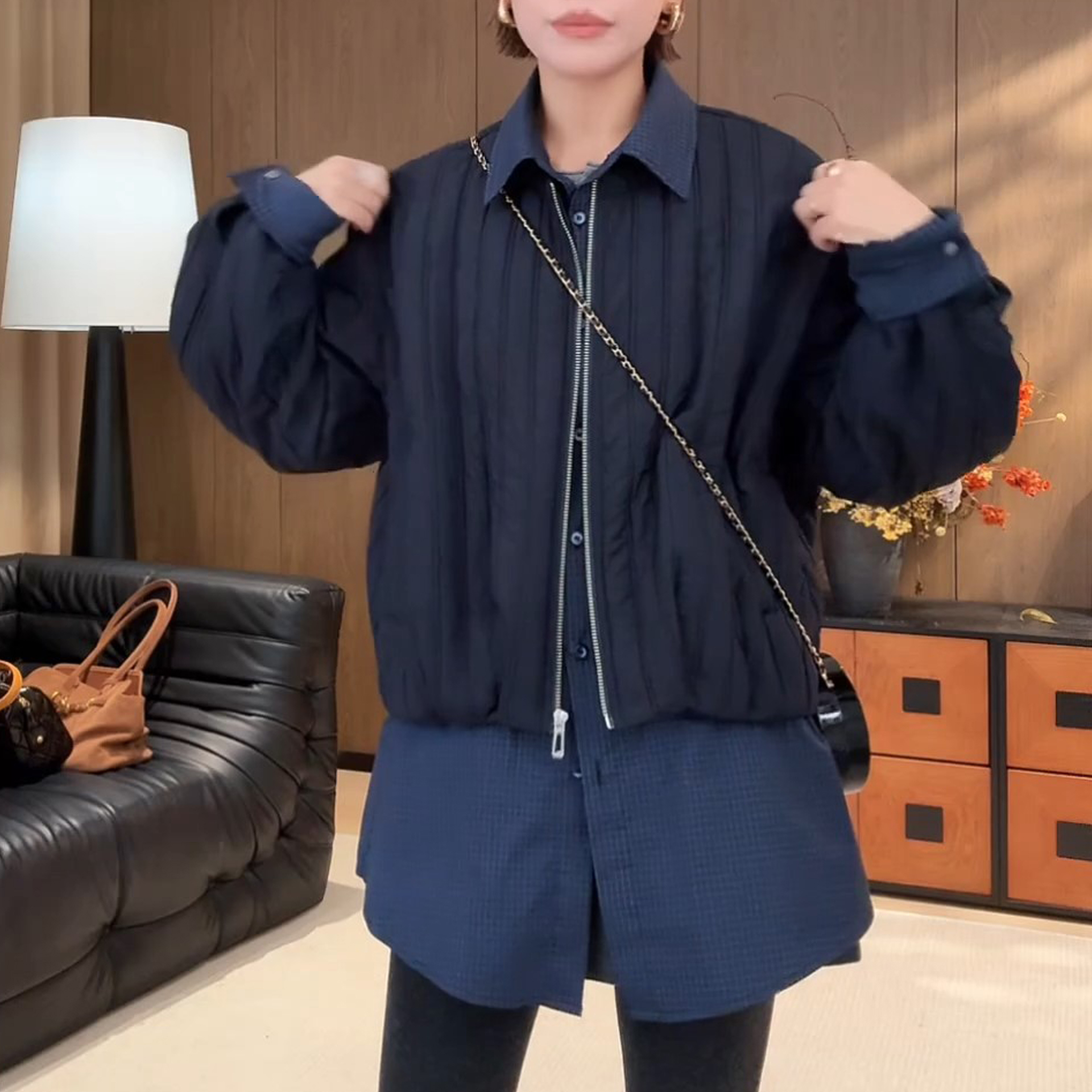 2025秋冬季新款韩版假两件休闲中长款外套时尚气质宽松显瘦棉服女