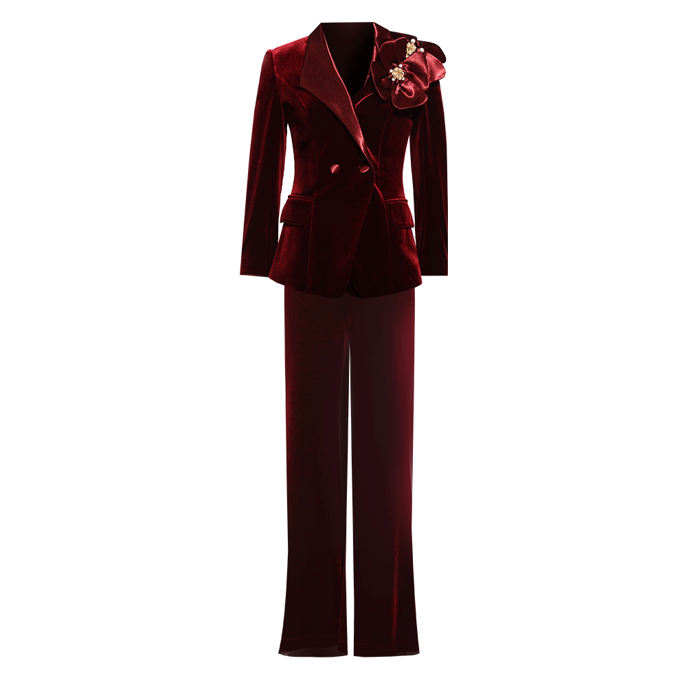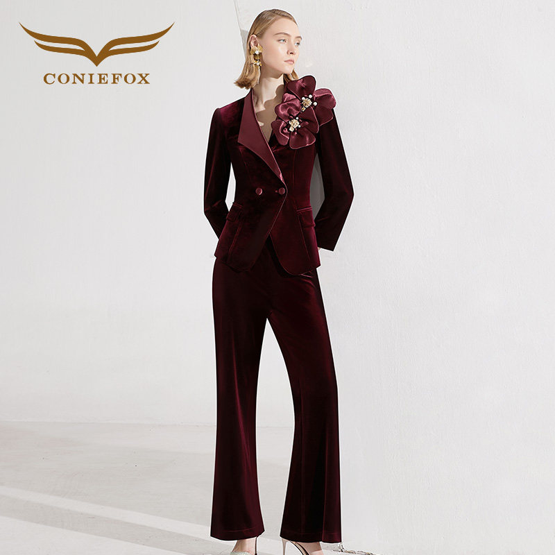 创意狐冬季穿搭一整套高级感小西装阔腿裤长裤套装年会主持人套装