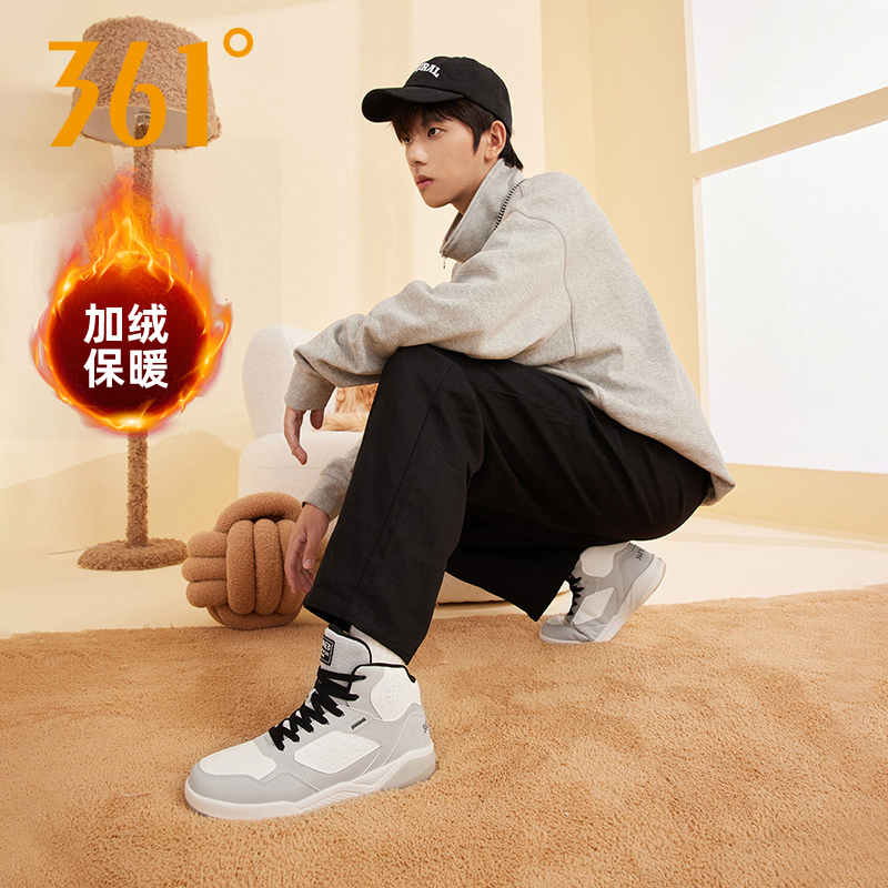 361男鞋加绒运动鞋男冬季高帮鞋官方正品加厚保暖棉鞋休闲鞋板鞋