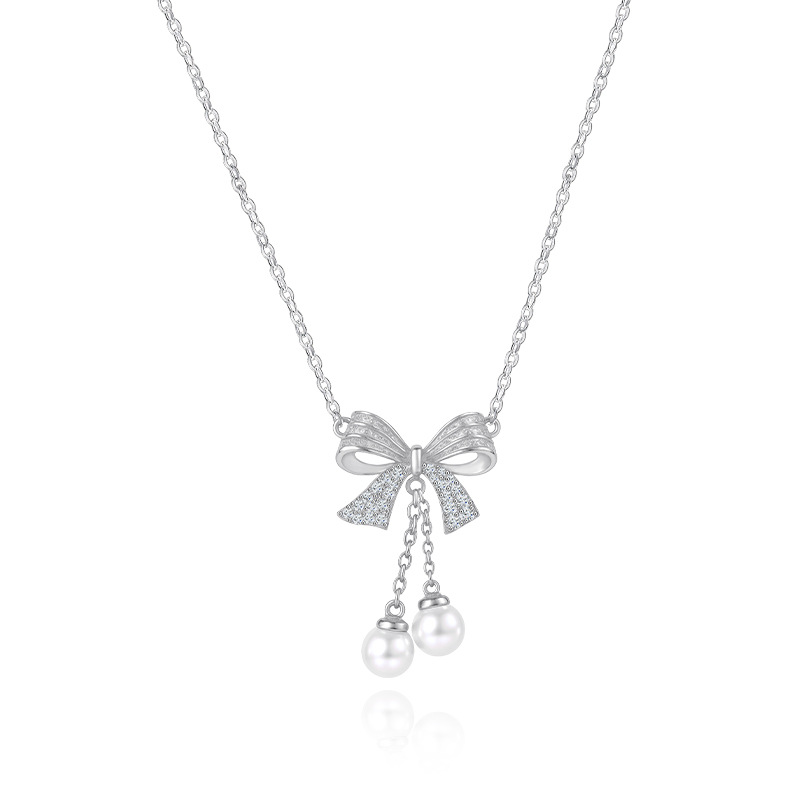 时尚蝴蝶结纯银项链女小众设计网红配饰简约百搭轻奢高级感锁骨链