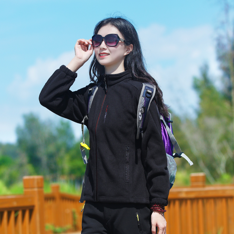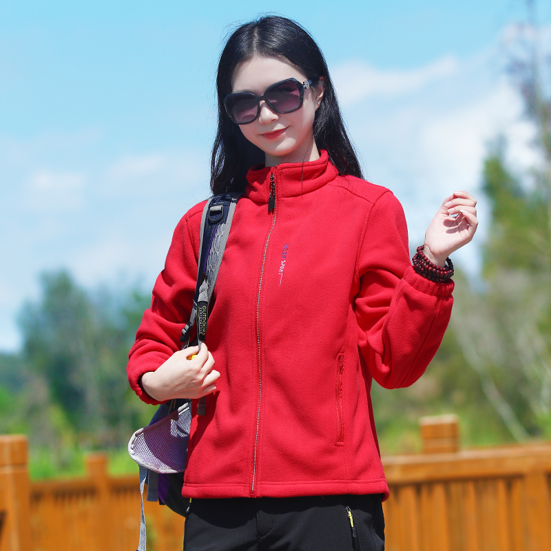 户外抓绒衣女摇粒绒外套冲锋衣内胆加绒加厚防寒保暖立领卫衣开衫