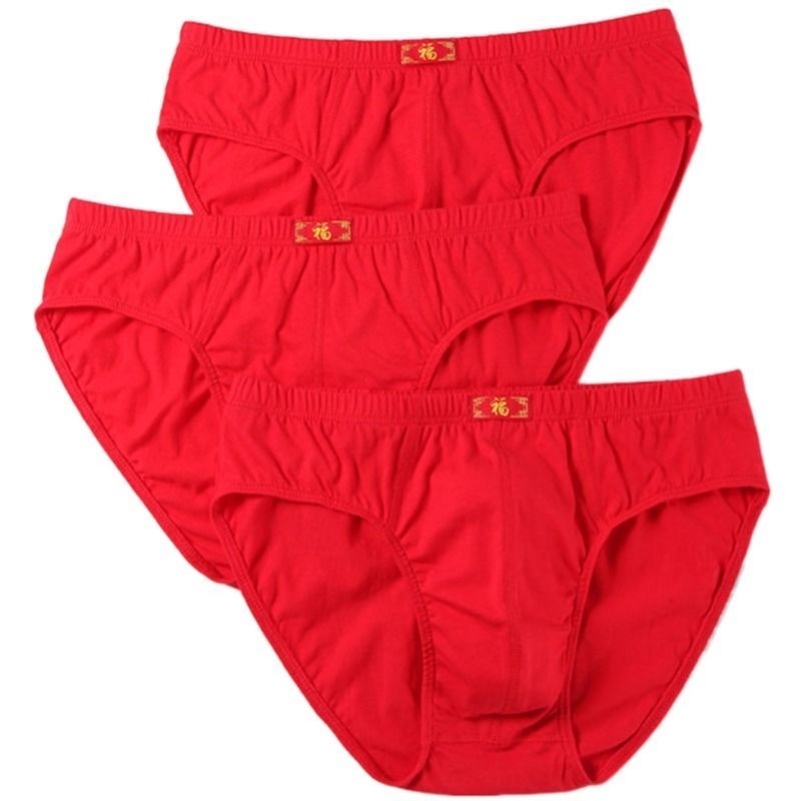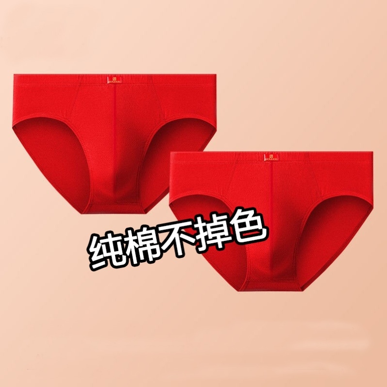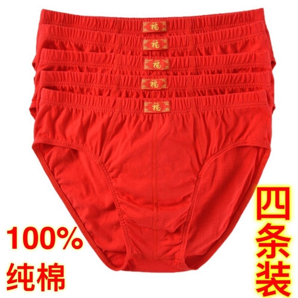 4条装 男士内裤三角裤本命年大红色全棉中腰结婚纯棉短裤衩头青年