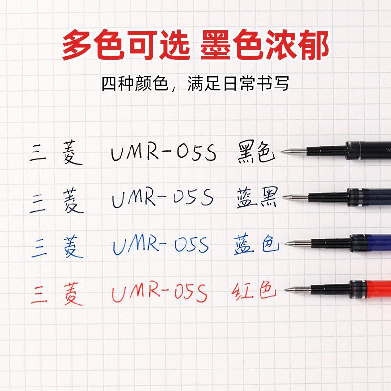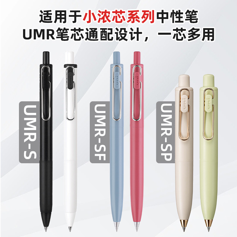 日本三菱铅笔uni小浓芯替芯UMR-05S按动笔小胖笔中性笔笔芯0.5黑色水笔0.38mm学生用专适用UMN-S套装