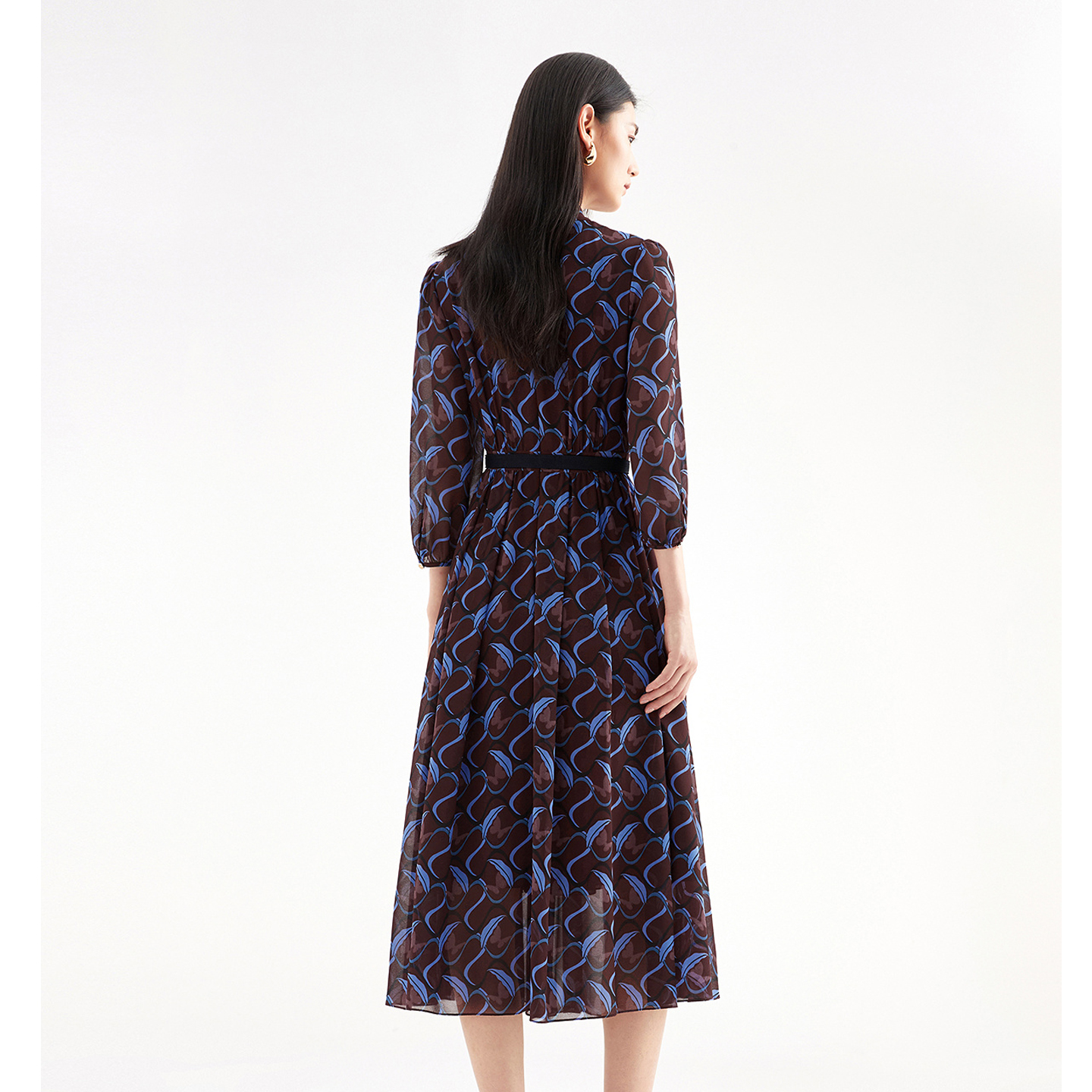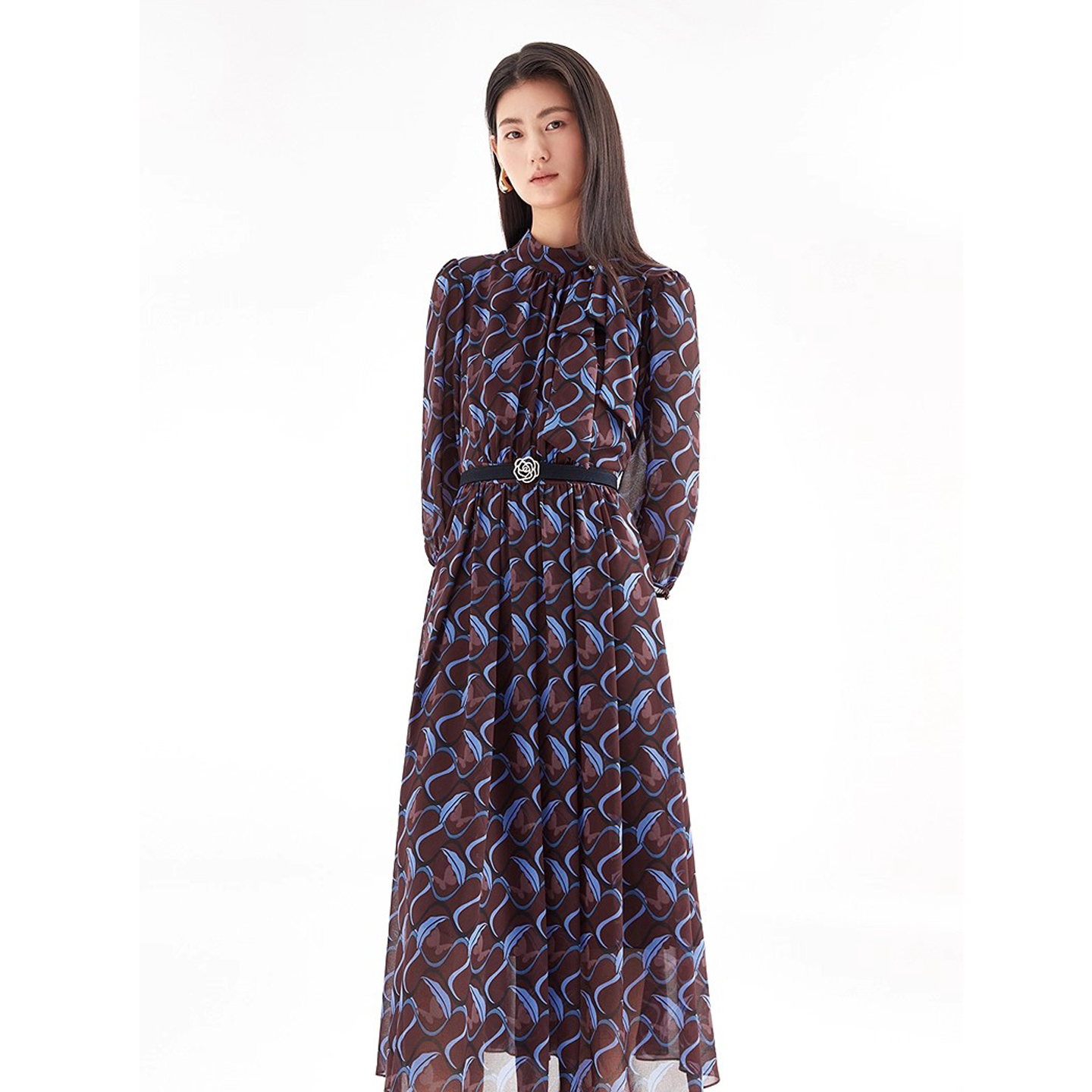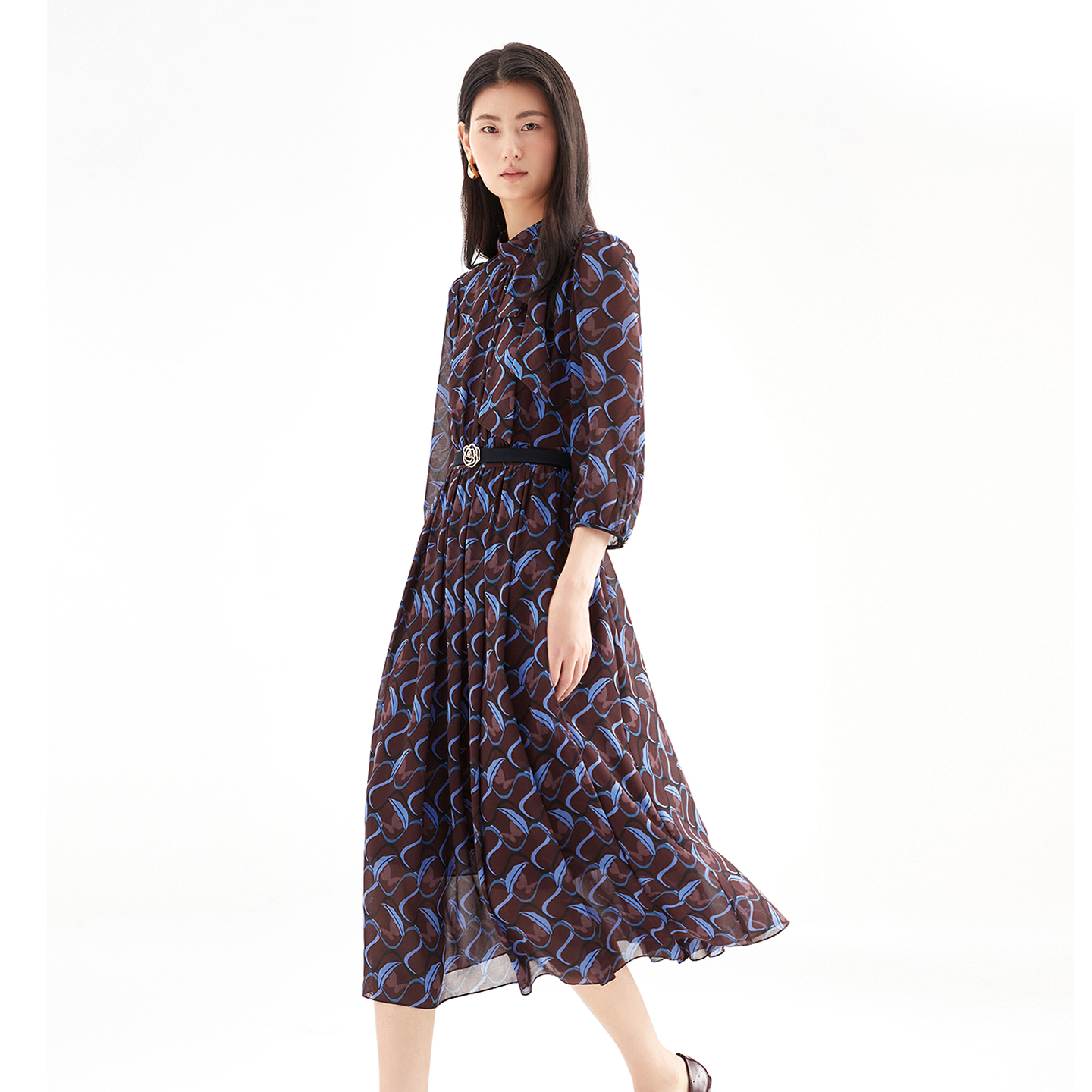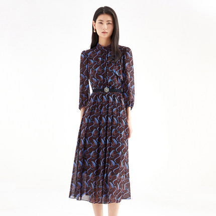 珂莱商场同款2025秋季新款气质修身中长款印花连衣裙女KF12383U8