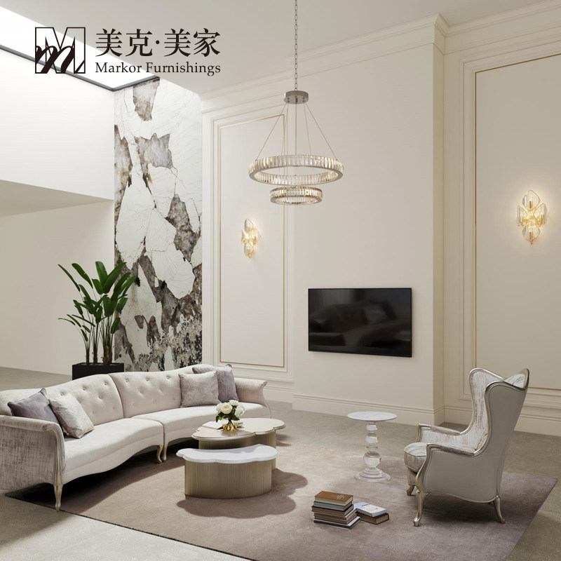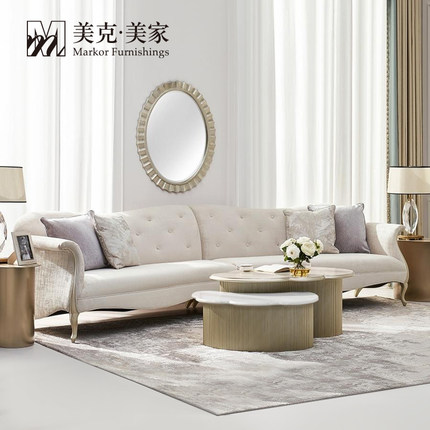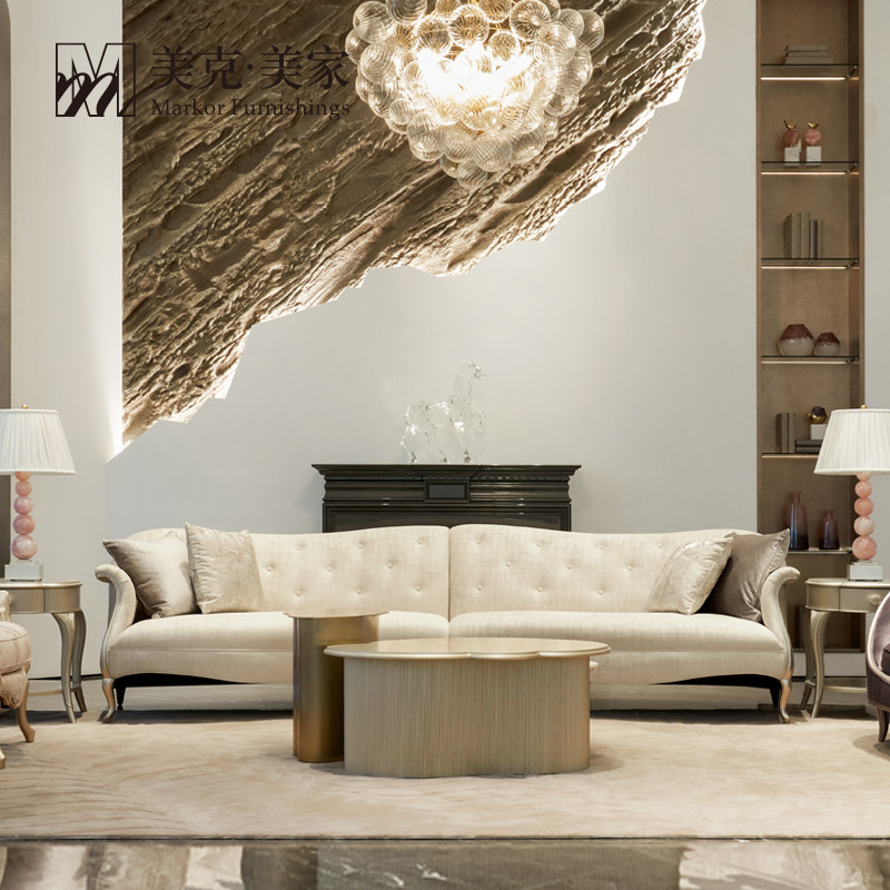 美克美家法式布艺沙发弗朗西斯卡实木三人沙发双人沙发客厅家具