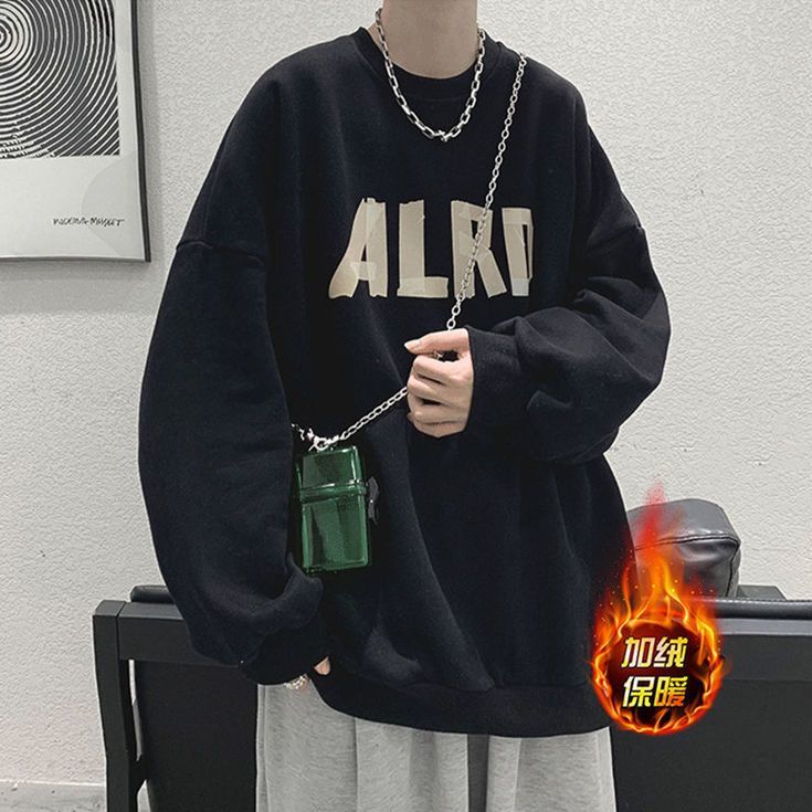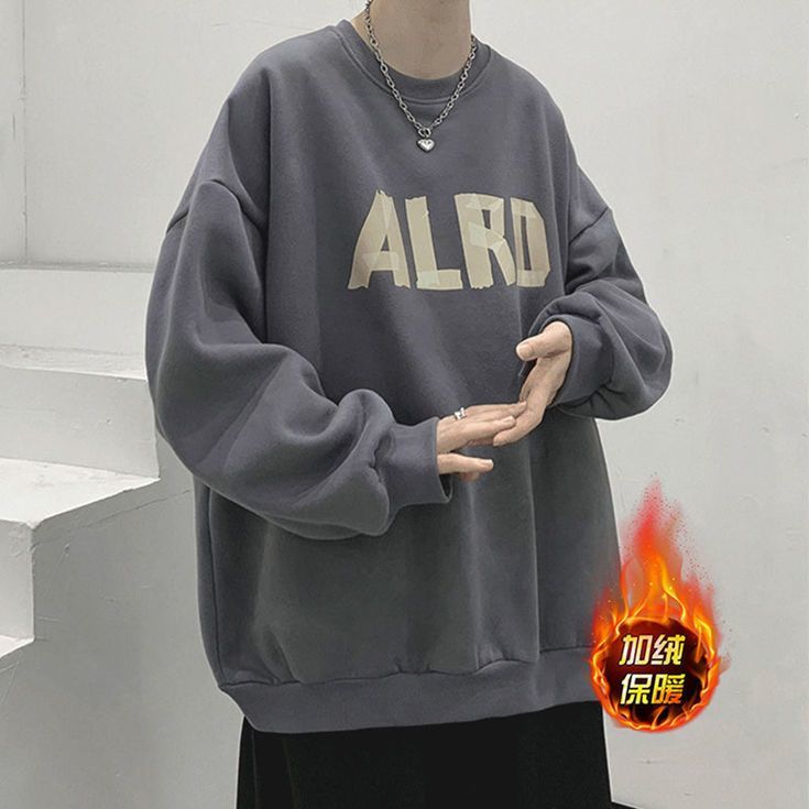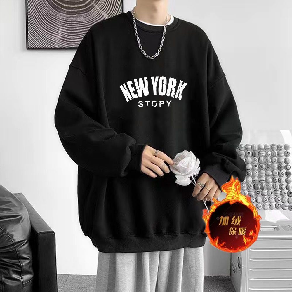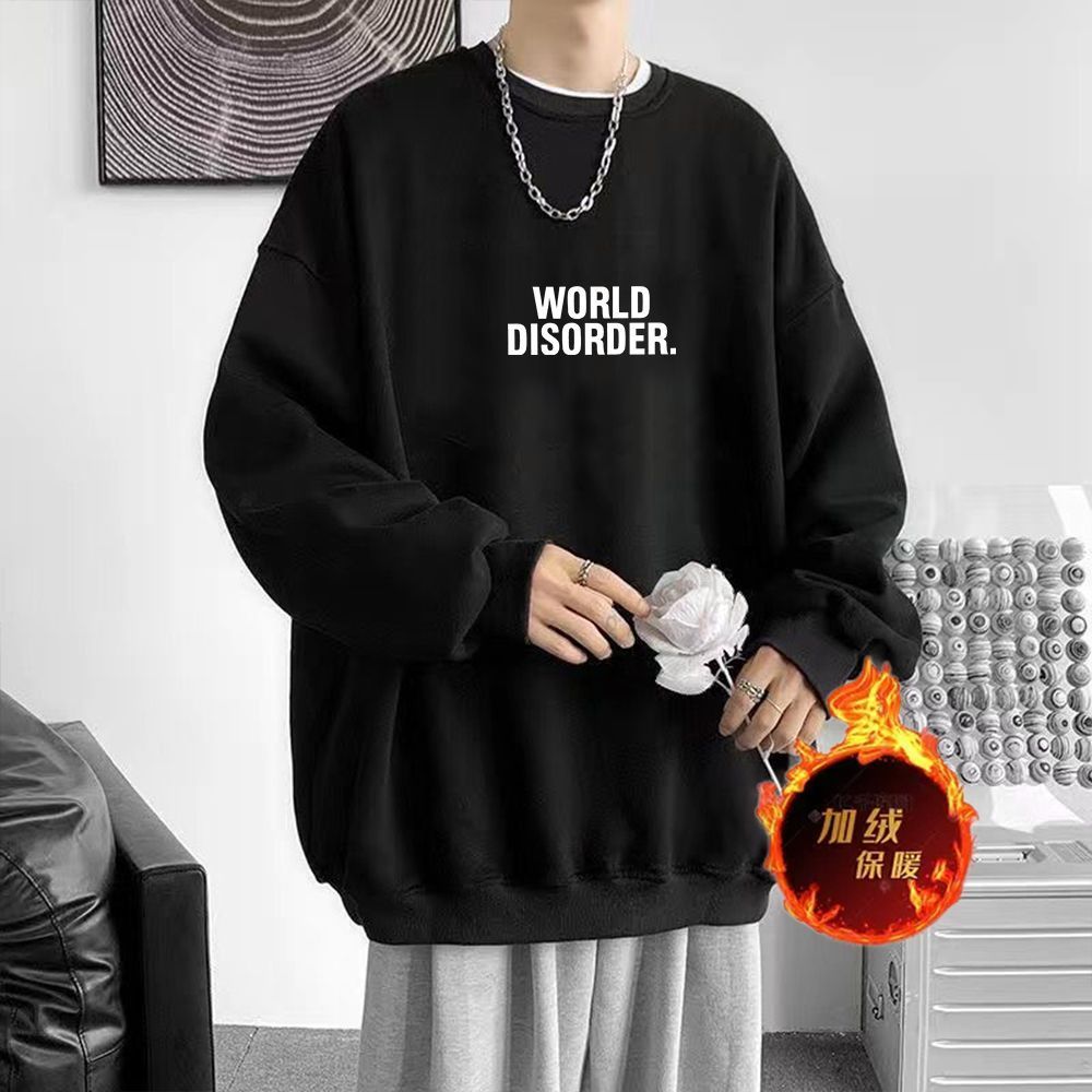 不起球加绒圆领卫衣男学生韩版秋冬潮流百搭套头长袖大码男士衣服