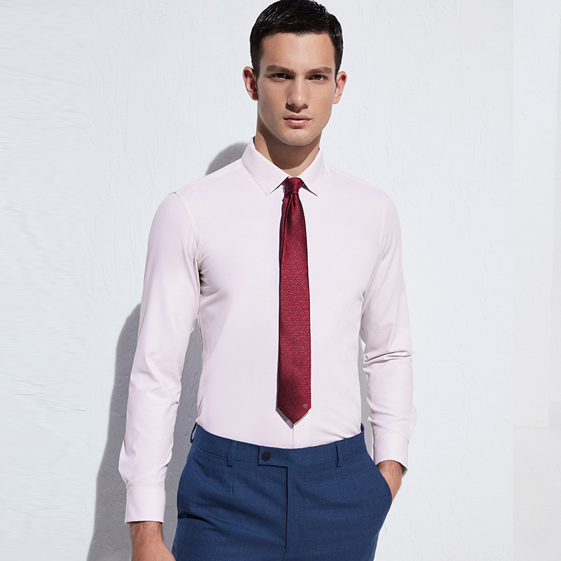 报喜鸟2024春季新款男商务正装婚庆长袖衬衫修身粉色新郎结婚衬衣
