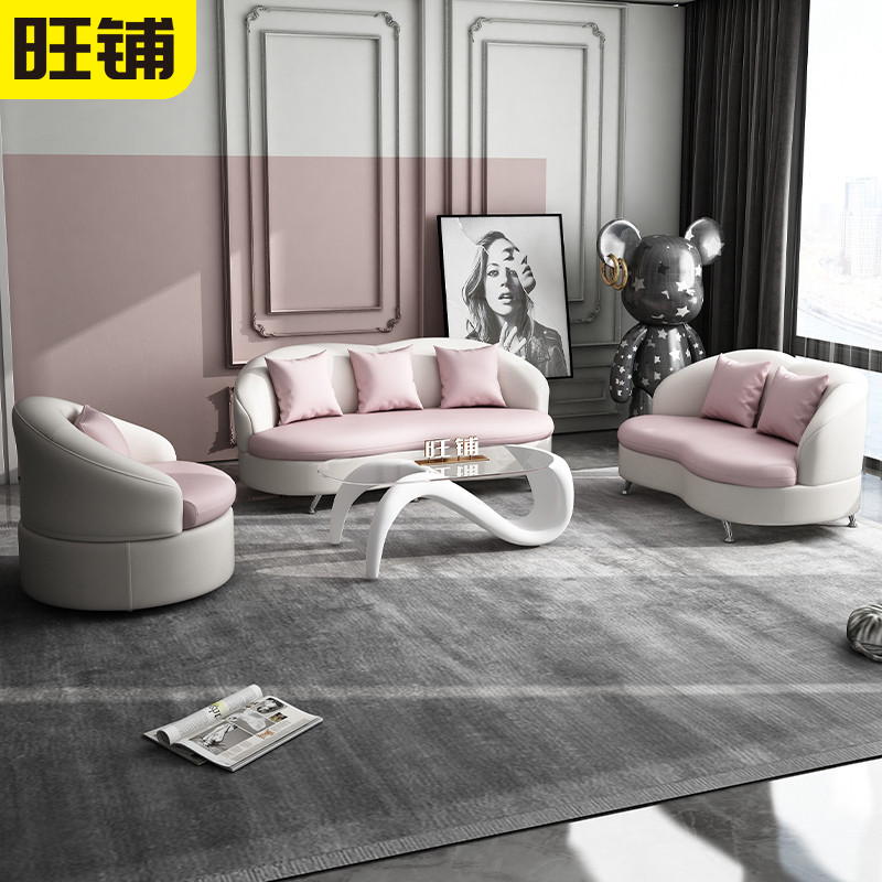科技布小户型现代简约美容院接待北欧客厅布艺小茶几组合网红沙发