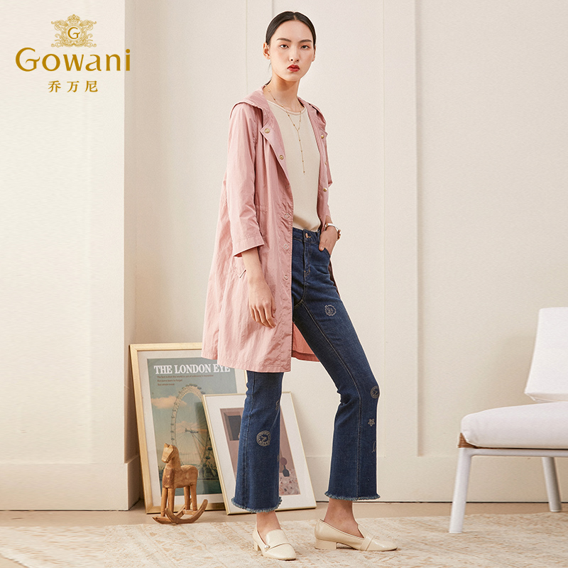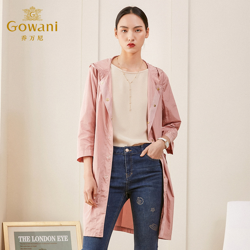 乔万尼商场秋装新款风衣女时尚流行直筒休闲连帽外套