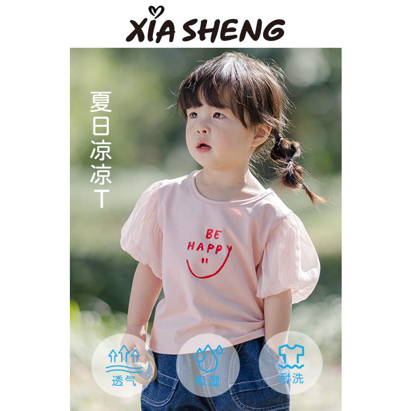 夏生 泡泡袖凉凉T 女童圆领短袖儿童半袖上衣女孩打底T恤夏季新款