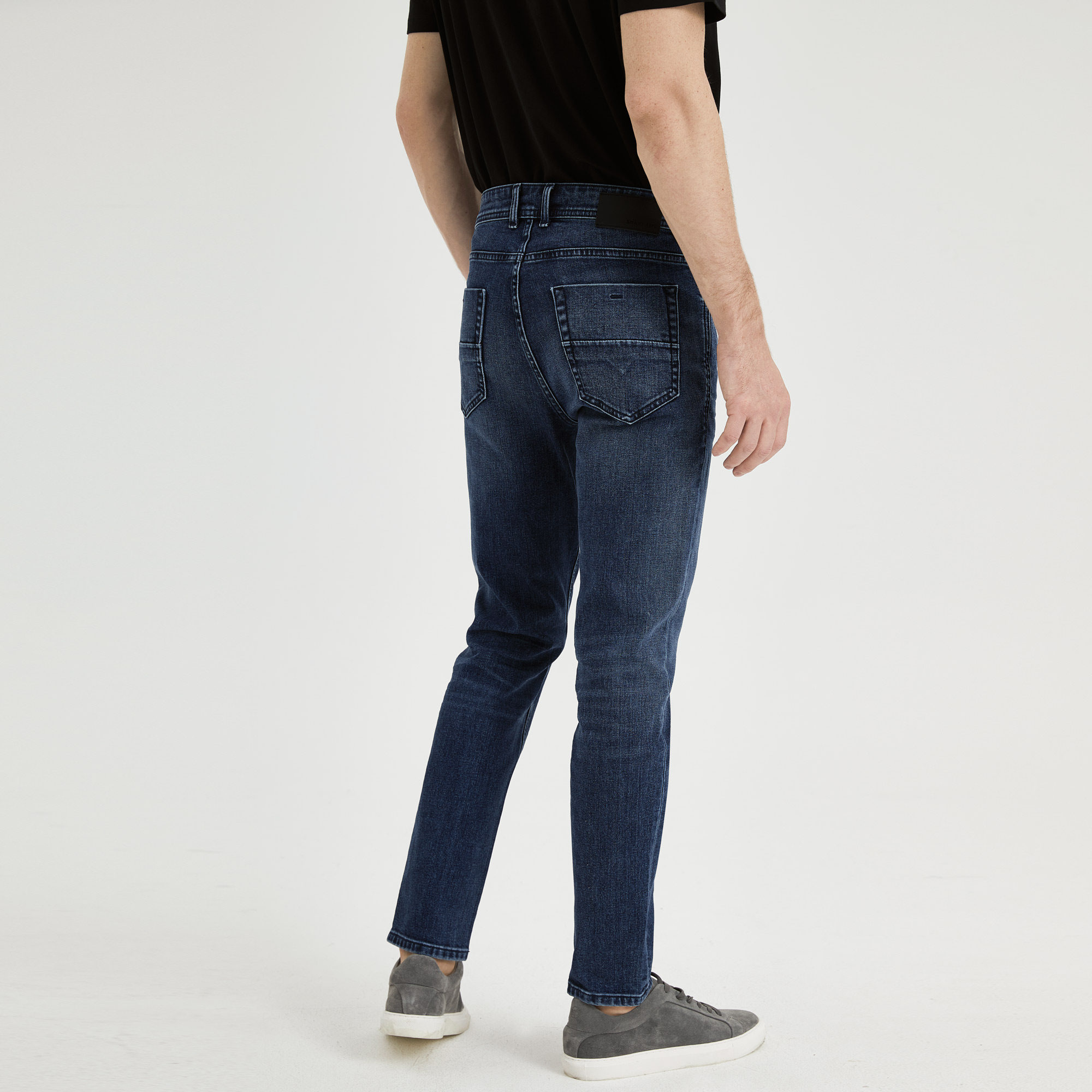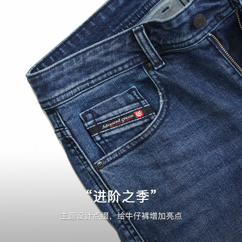牛仔裤男微弹常规款春秋四季百搭休闲裤装深蓝色中高腰合体直筒裤