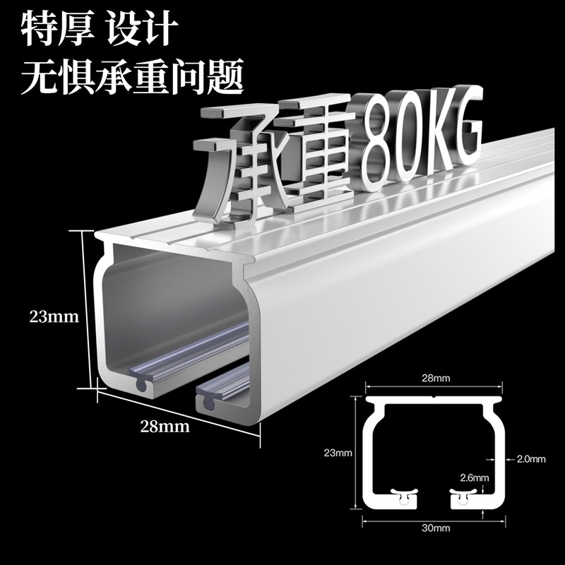 铝合金配件静音加厚轨道侧装直轨滑轨L型导轨U滑道窗帘杆双轨顶装