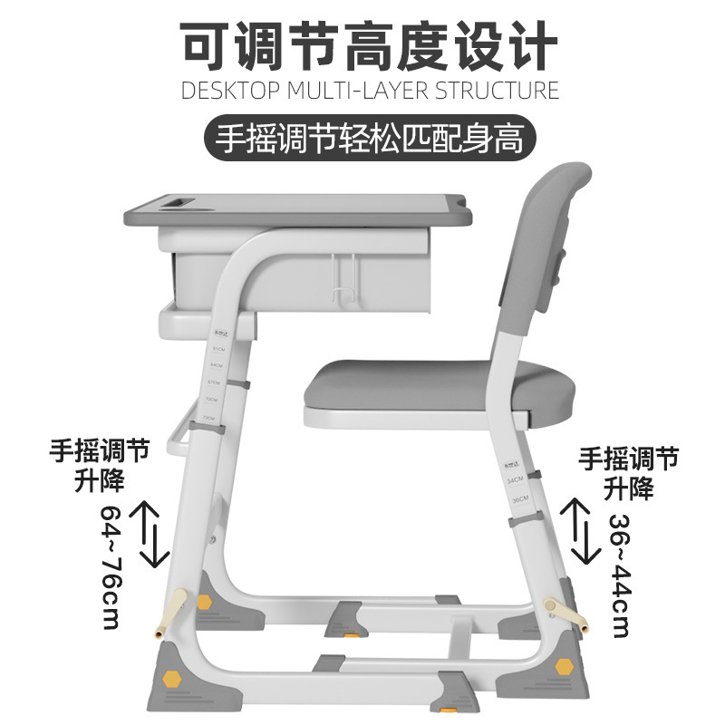 手摇升降儿童学习桌中小学生课桌椅家用小孩单人写字桌子学校书桌