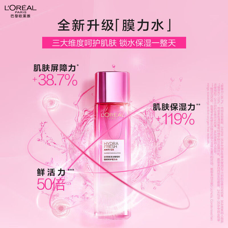 【自营】欧莱雅葡萄籽清润膜力水精华水爽肤水强韧修护补水保湿女