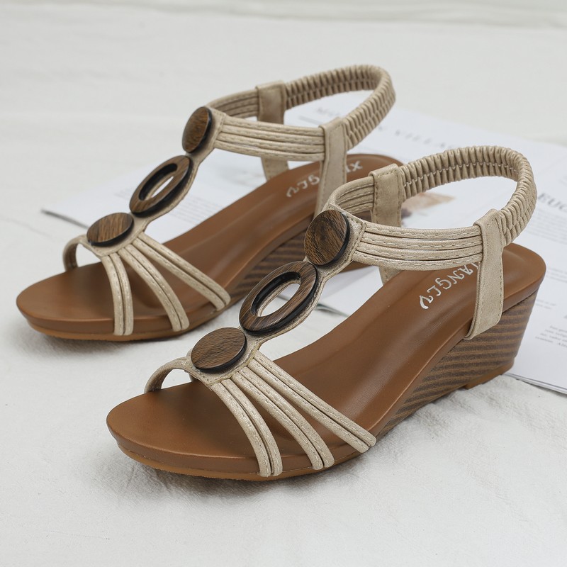民族风凉鞋女2025夏季新款时尚百搭配裙子坡跟仙女露趾中跟罗马鞋