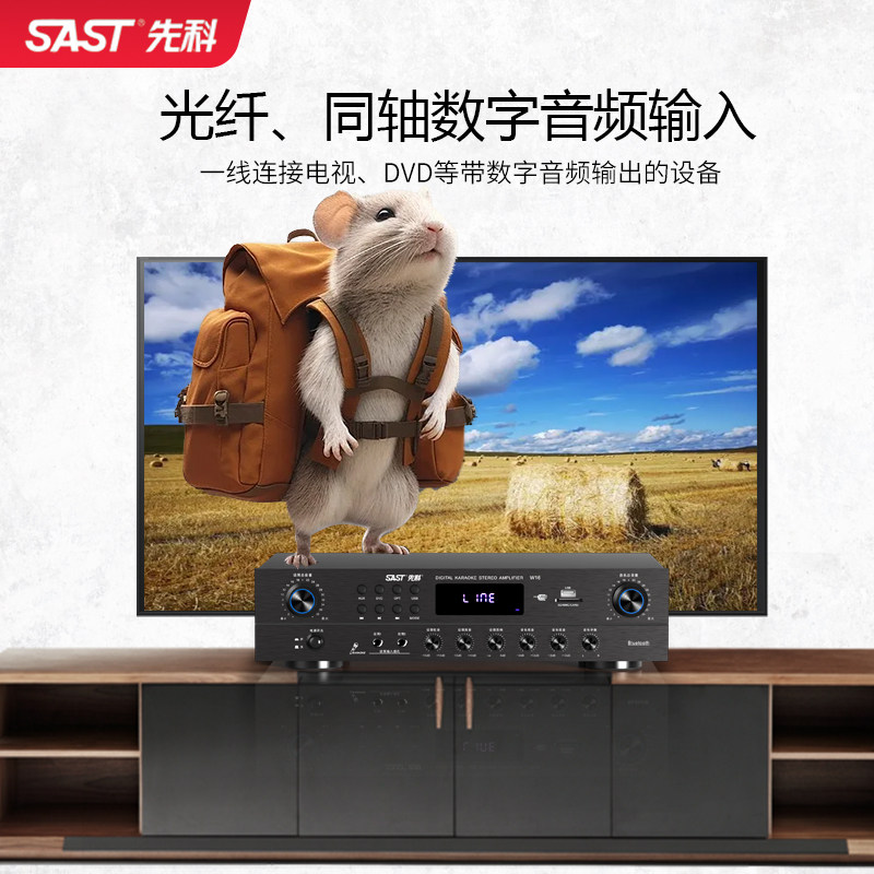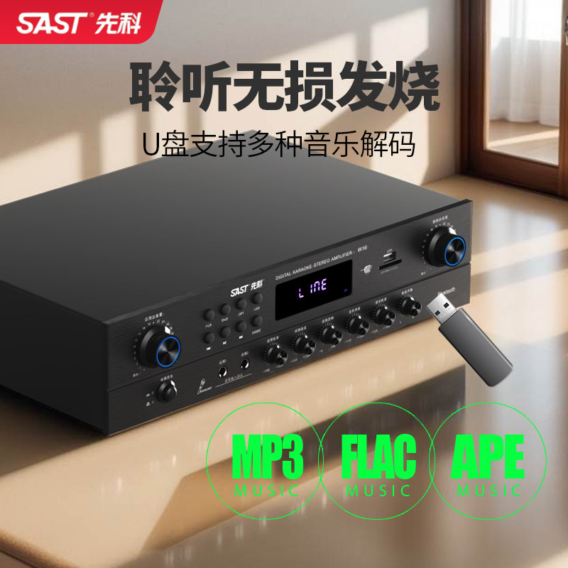 先科W16功放机家用立体声大功率专业卡拉OK发烧重低音同轴蓝牙