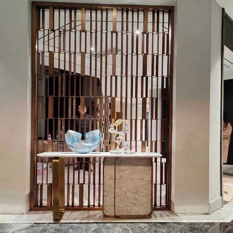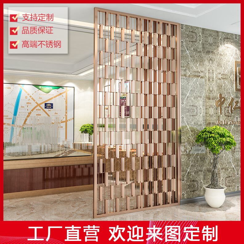 轻奢不锈钢屏风花格现代定制玫瑰金入户型造玄关隔断镂空金属雕花