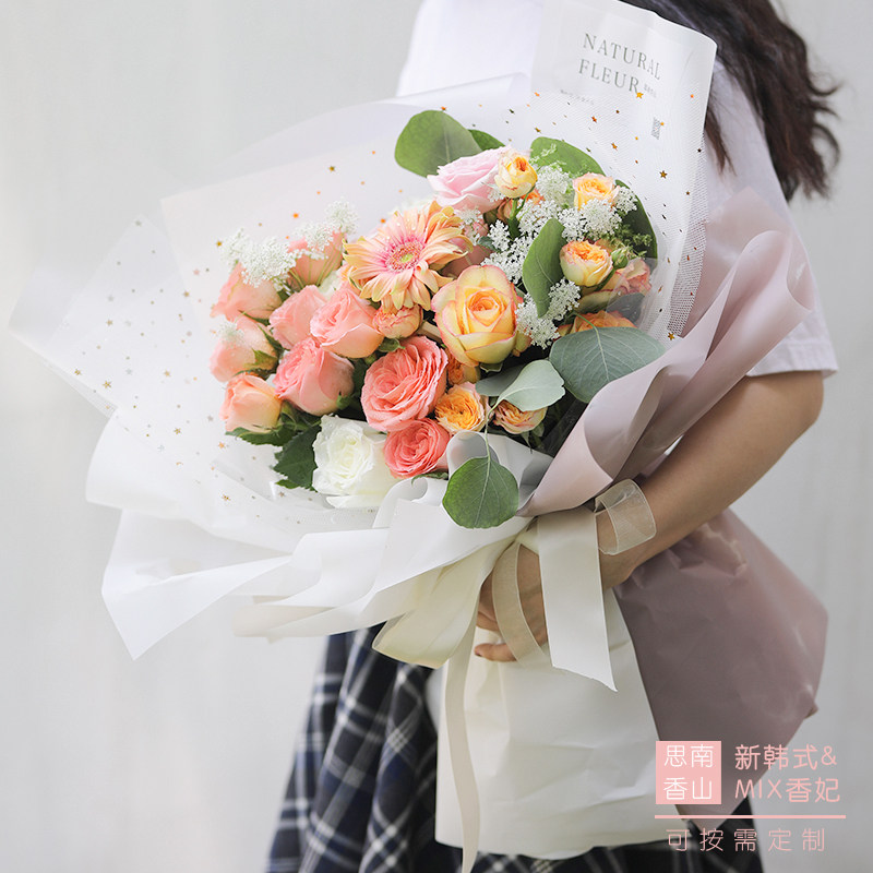 进口鲜花花束玫瑰混搭花生日爱人