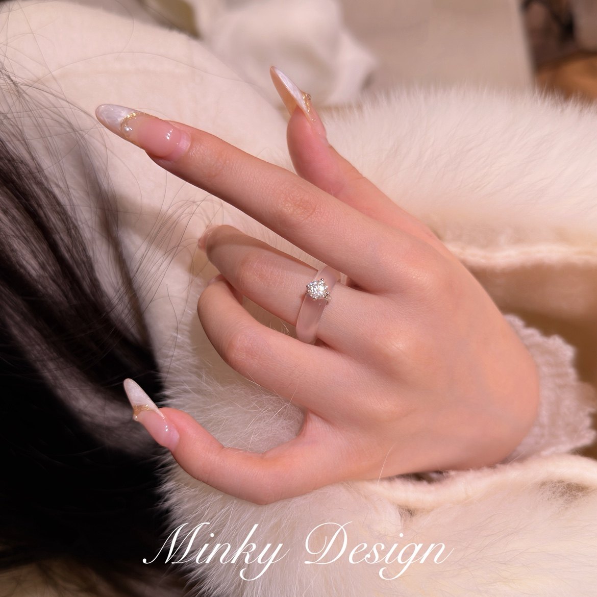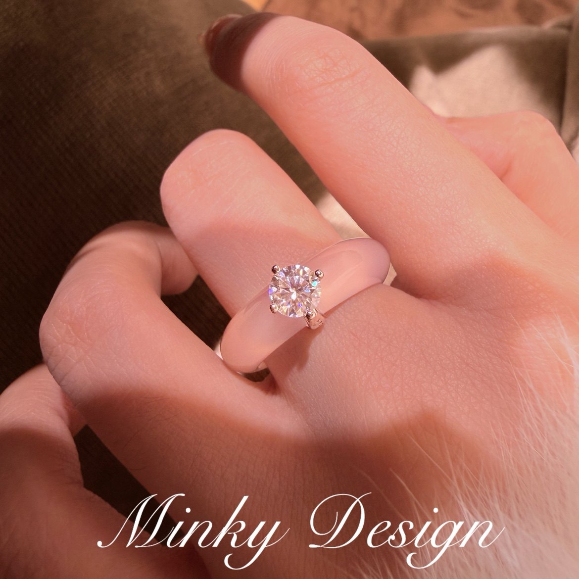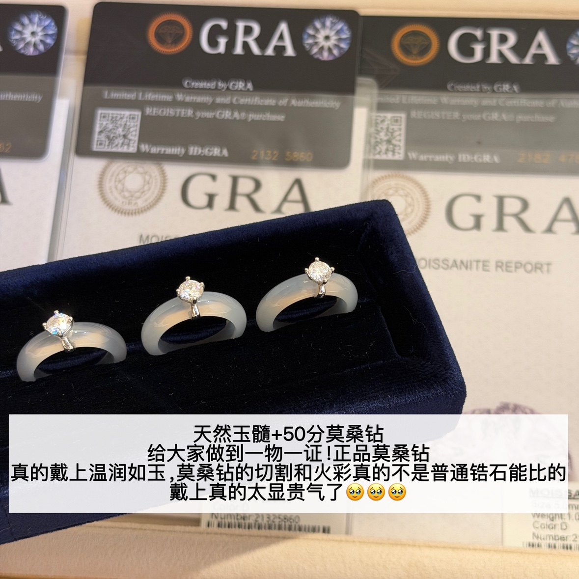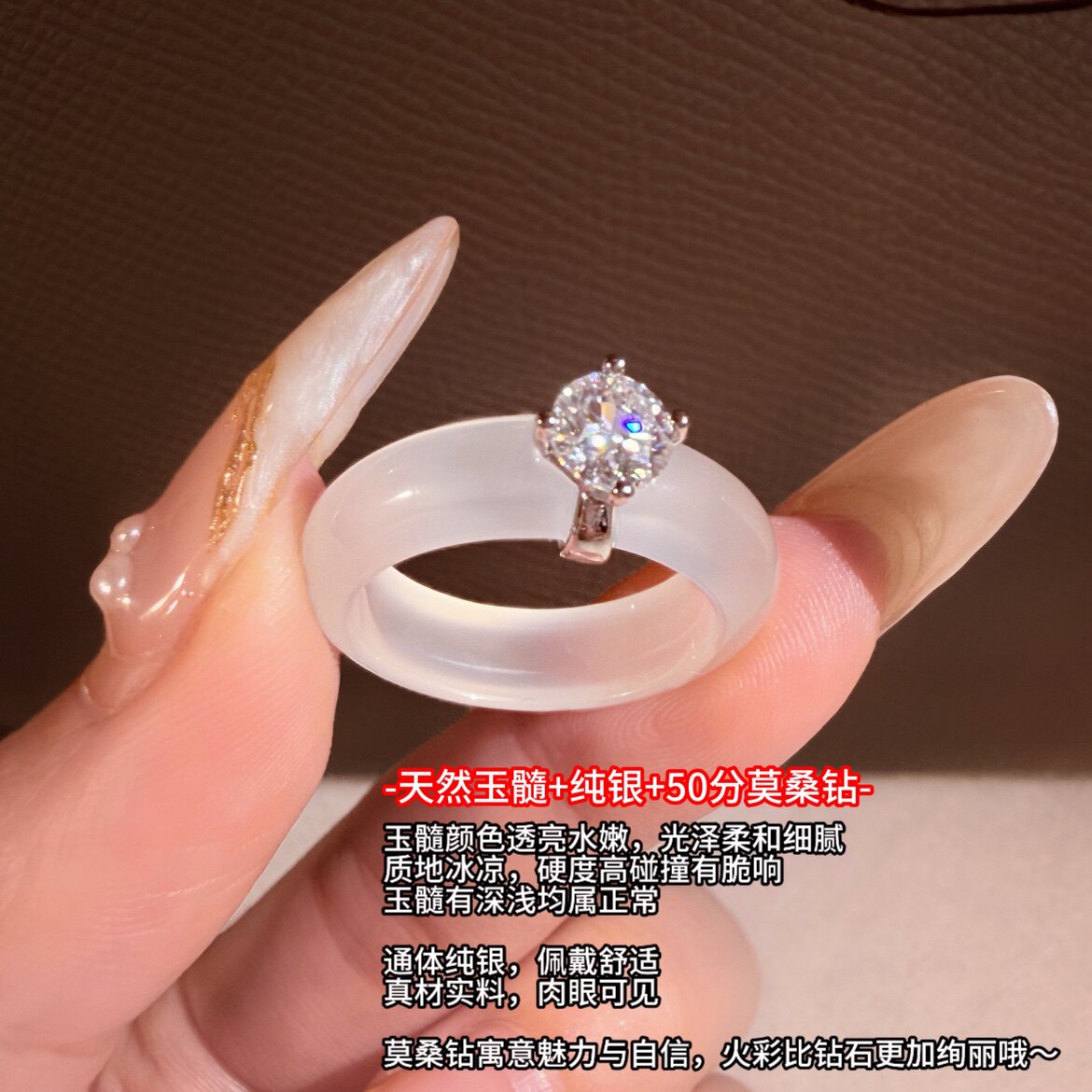 「陨石冰川」送证书!莫桑钻白玉髓戒指女手饰精致指环新中式戒指